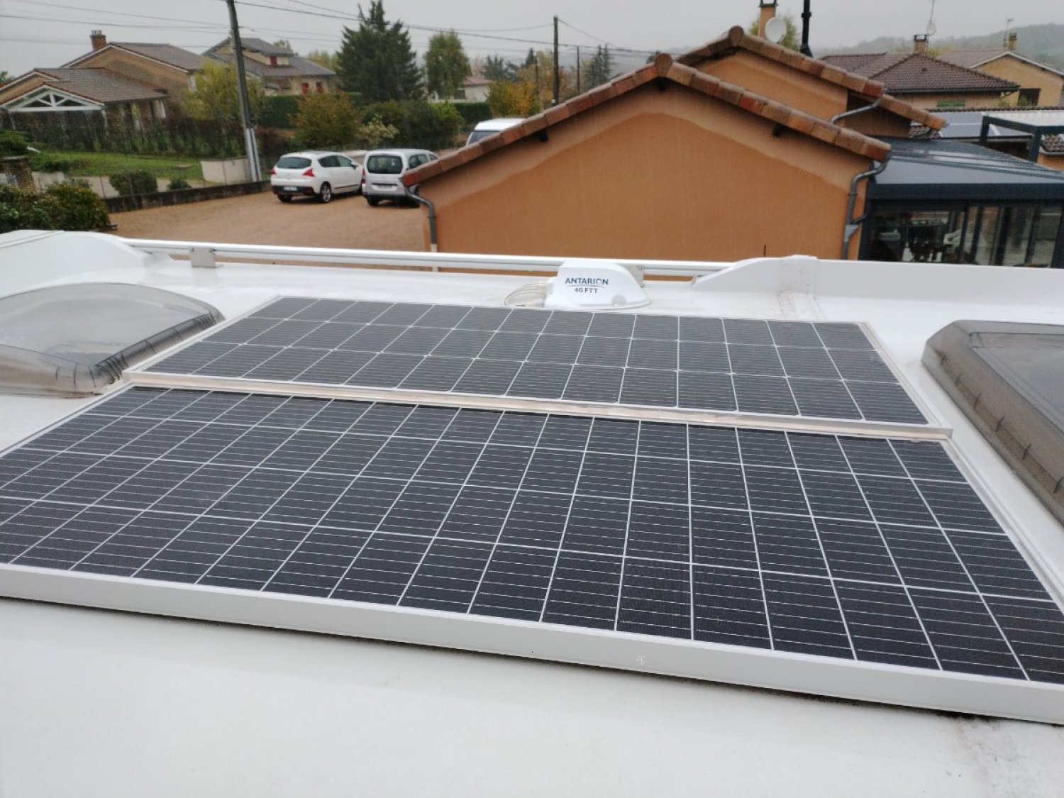 2 panneaux solaires 350 W.antenne 4 gfit smart tv. jantes alu .batterie lithium 150.store remis horizontal (rare chez fleurette/florium)
