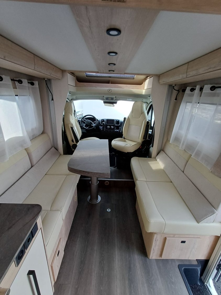-Pack Confort: Traction +, Antibrouillards et PC peints, commandes au volant + HP, Porte cellule Hartal avec baie et moustiquaire, stores cabine, autoradio double Din, DAB+ avec kit mains libre, caméra de recul, retroviseurs ext électrique dégivrants et rabatables électriquement (sur 60 LG,64LDF,69LJG), Commande digitale Truma, HP AV, 2ème télécommande(sauf Keyless), convertisseur DC/DC 40 AH, Batterie Lithium 100 AH, transformation dinette en couchage, hotte cuisine digitale à extraction latérale, vide poche central, inverseur gaz Duo Control, matelas Evolutex, Toit décaissé.