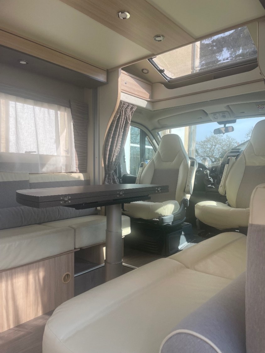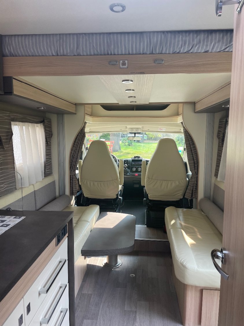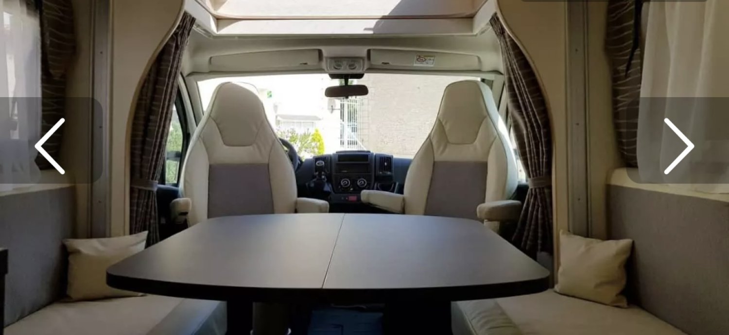 - lit électrique 150 cm escamotable au plafond laissant place une fois remonté à un vaste salon face à face,