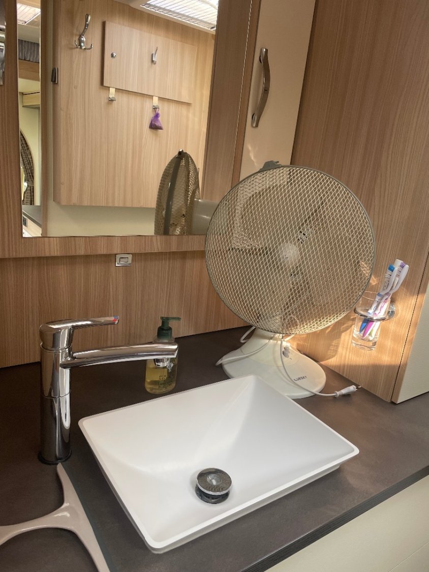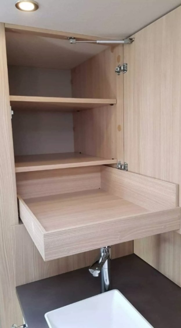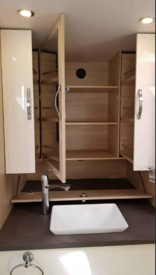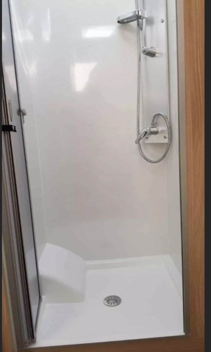- et agencement à l'arrière en grande salle d'eau, douche xxl, grande vasque, wc et nombreux placards.