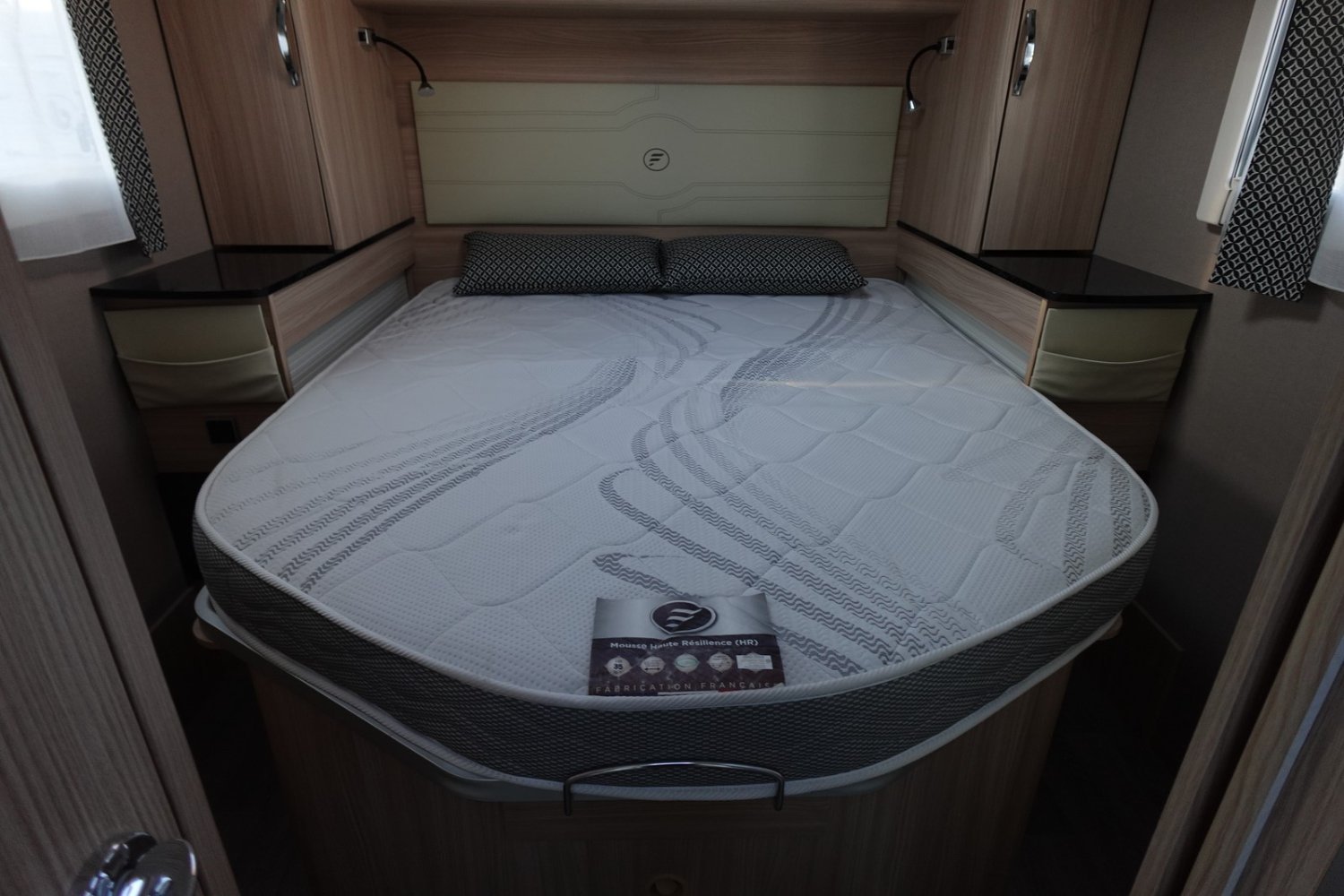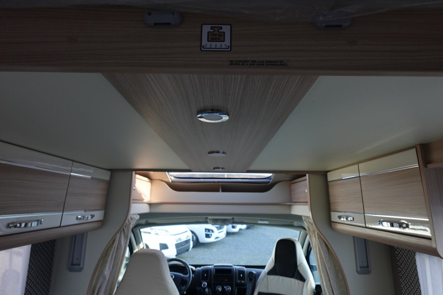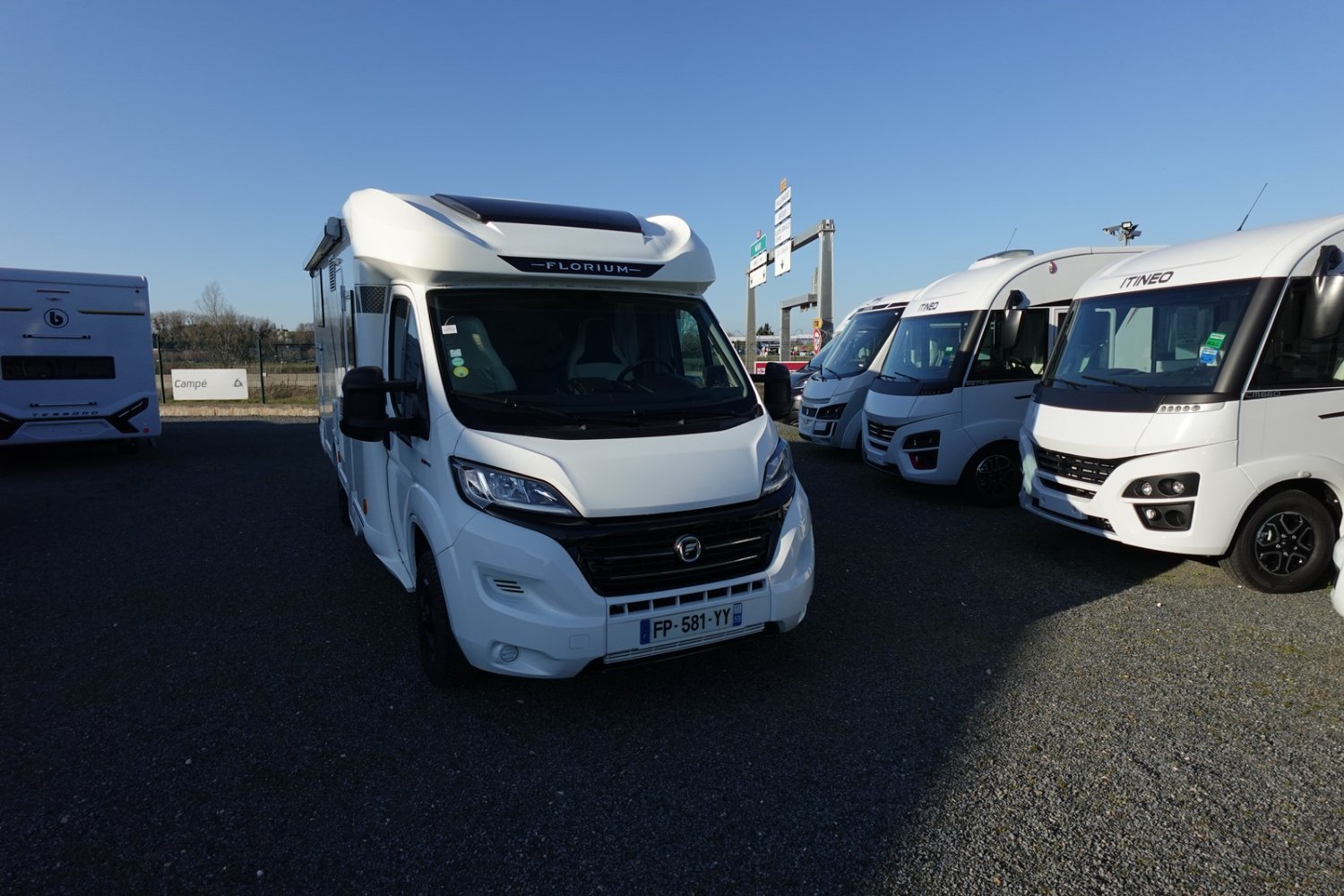 Le MAYFLOWER 74LMF, camping-car profilé spacieux, vous offre une implantation et un style incomparable : Ambiance intérieure cosy unique, grands espaces, équipements et grand confort au quotidien : banquette face / face, lit central, cuisine ouverte en L, cabinet de toilette à double cloisonnement, grande soute garage.