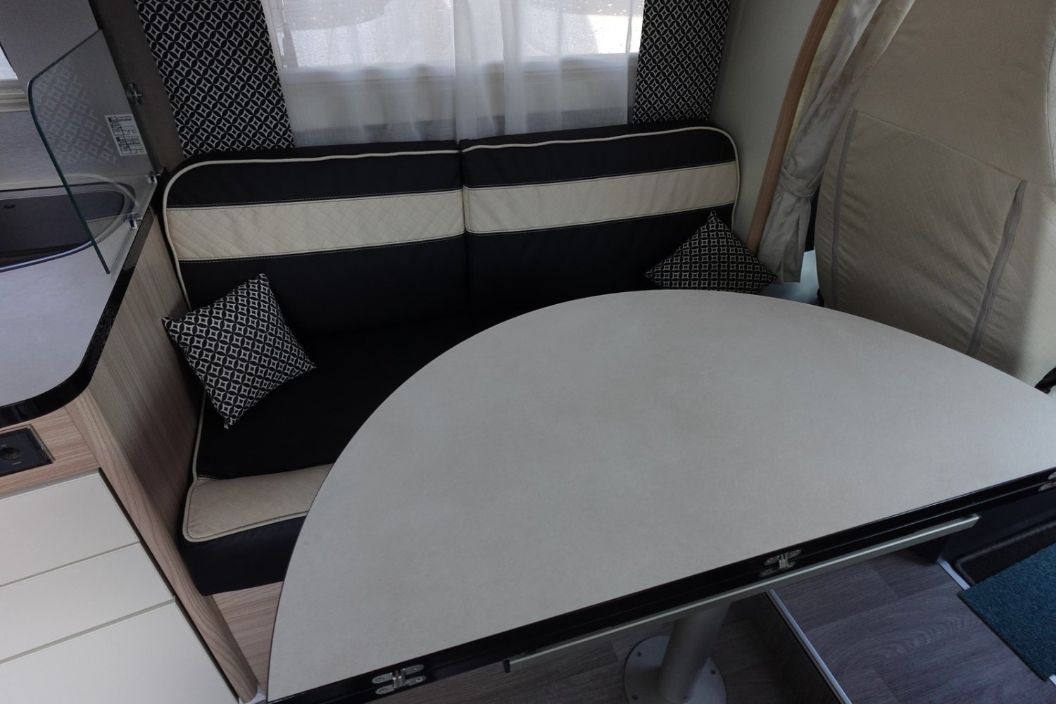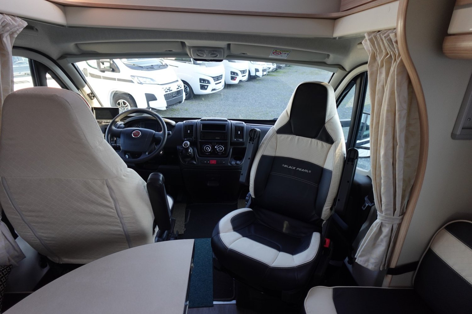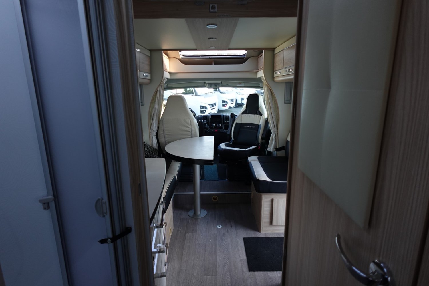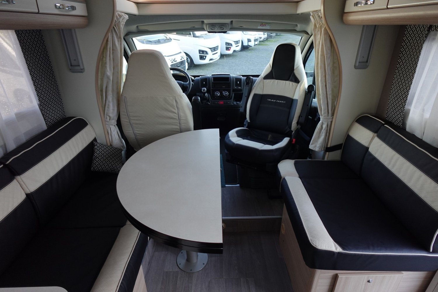 Le MAYFLOWER 74LMF, camping-car profilé spacieux, vous offre une implantation et un style incomparable : Ambiance intérieure cosy unique, grands espaces, équipements et grand confort au quotidien : banquette face / face, lit central, cuisine ouverte en L, cabinet de toilette à double cloisonnement, grande soute garage.
