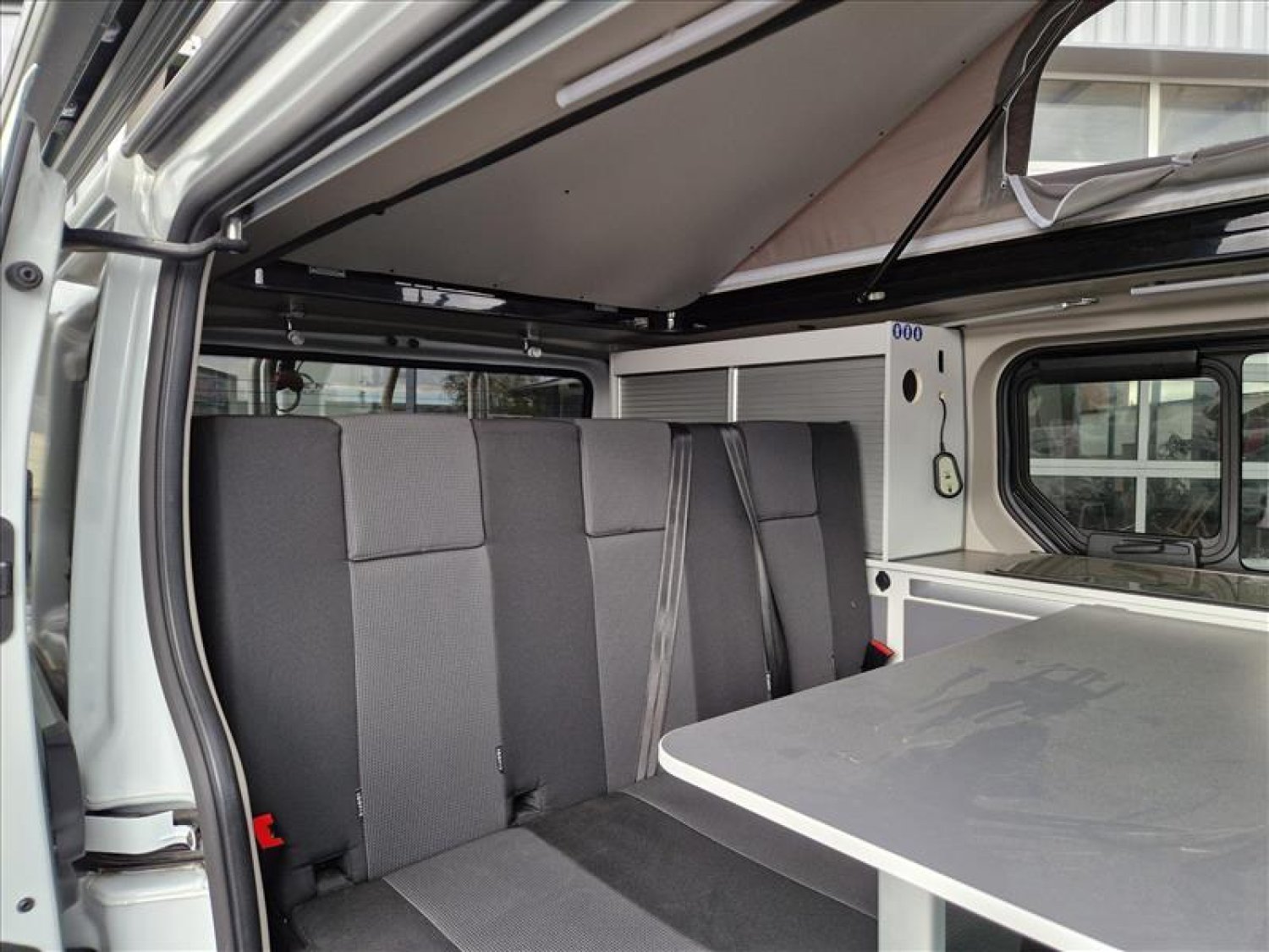 Couchage double dans le toit, Vitres et rétroviseurs à commandes électriques, Climatisation cabine, Régulateur de vitesse, Pré-équipement caméra de recul, Verrouillage centralisé à distance, ESP/ABS, Douchette extérieur, Réfrigérateur à compression 41 litres, Toit relevable électrique avec 3 fenêtres