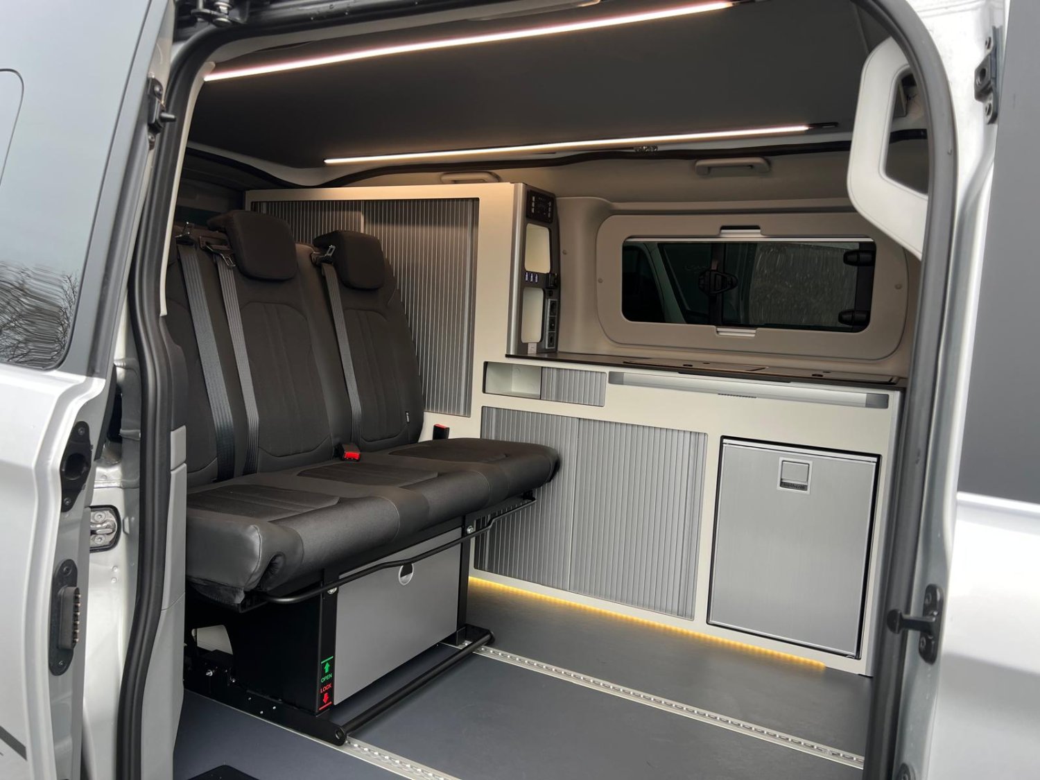 Découvrez ce magnifique Font Vendome Autocamper Elegance sur porteur Ford Tourneo 2.0L 136ch boite automatique + toit relevable. Il est doté de nombreux équipements afin de garantir une expérience complète à son bord : surmatelas sur la banquette du bas, frigo à compression, caméra de recul, douche extérieure, panneau solaire, chauffage diesel etc...