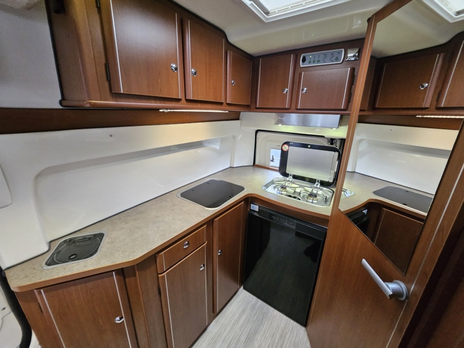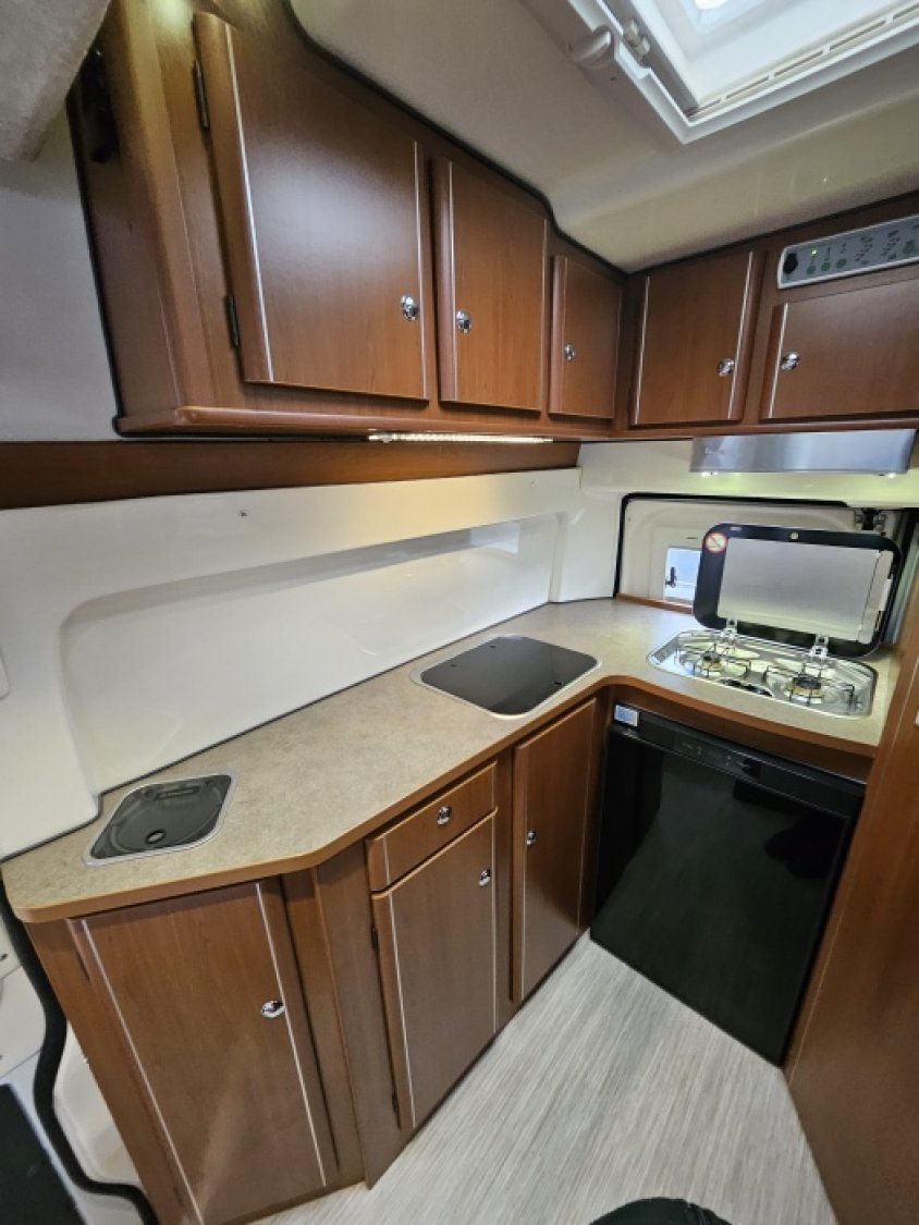 Lit pavillon 2 places. Lit dinette 2 places. Salle de bain et toilette. Moustiquaires + stores occultants. Siège conducteur et passager pivotants grande cuisine en L – réfrigérateur dometic 92 litres avec freezer – grande cabine de douche - Gazinière 2 feux - Fenêtre de salle de bain - Éclairage LED - Hotte aspirante – poubelle de plan de travail -