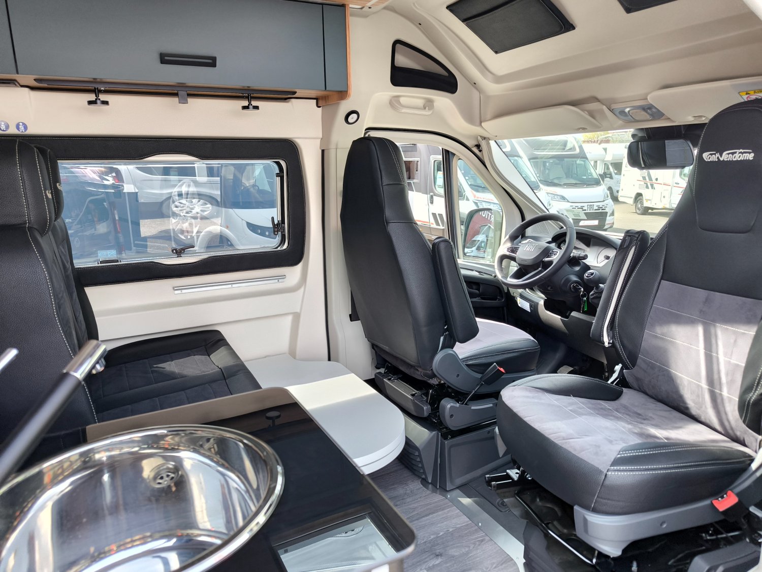 Le Duo Van crée en 2014, a été spécialement conçu pour les couples, offrants des espaces de vie généreux. Ses lits arrière jumeaux sur sommiers à lattes peuvent se transformer en un grand lit simple, avec de nombreux rangements intégré. Son coin toilette, avec WC escamotable et paroi de douche, est à la fois pratique et spacieux.