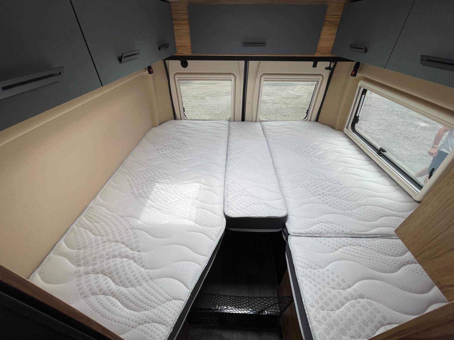 Le Duo Van crée en 2014, a été spécialement conçu pour les couples, offrants des espaces de vie généreux. Ses lits arrière jumeaux sur sommiers à lattes peuvent se transformer en un grand lit simple, avec de nombreux rangements intégré. Son coin toilette, avec WC escamotable et paroi de douche, est à la fois pratique et spacieux.