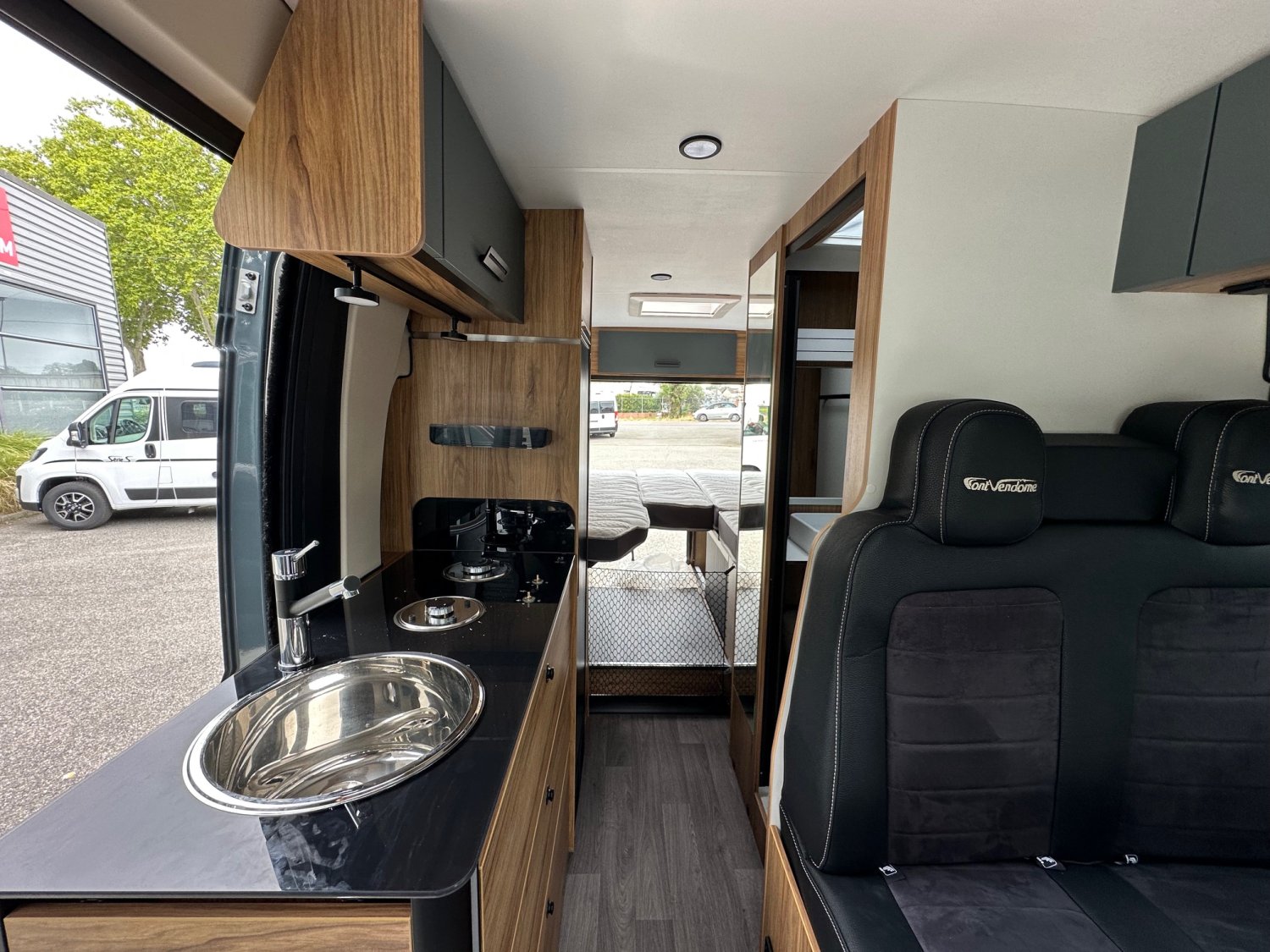 Le Duo Van crée en 2014, a été spécialement conçu pour les couples, offrants des espaces de vie généreux. Ses lits arrière jumeaux sur sommiers à lattes peuvent se transformer en un grand lit simple, avec de nombreux rangements intégré. Son coin toilette, avec WC escamotable et paroi de douche, est à la fois pratique et spacieux.
