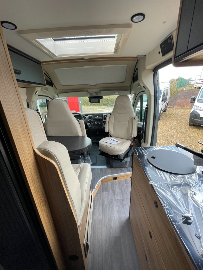 Antibrouillards avant, Douchette extérieure, Chauffage combi Truma gasoil + kit altitude, Climatisation cabine, Eclairage extérieur, Jantes Alu 16", Moustiquaire de porte latérale, Batterie Lithium 120 Ah, Ordinateur de bord + commandes radio au volant, Rétro-caméra de recul, Rétroviseurs dégivrants électrique, Sièges cabines pivotants réglables, Marchepied électrique, Pack Multimédia ZENEC, Pack Safety, Panneaux solaires, Régulateur de vitesse avec limiteur, Sonde de réchauffage du réservoir des eaux usées, Store extérieur, Stores occultants plissés, Suspension renforcée, Toit panoramique, Traction +, Vérouillage centralisé à distance