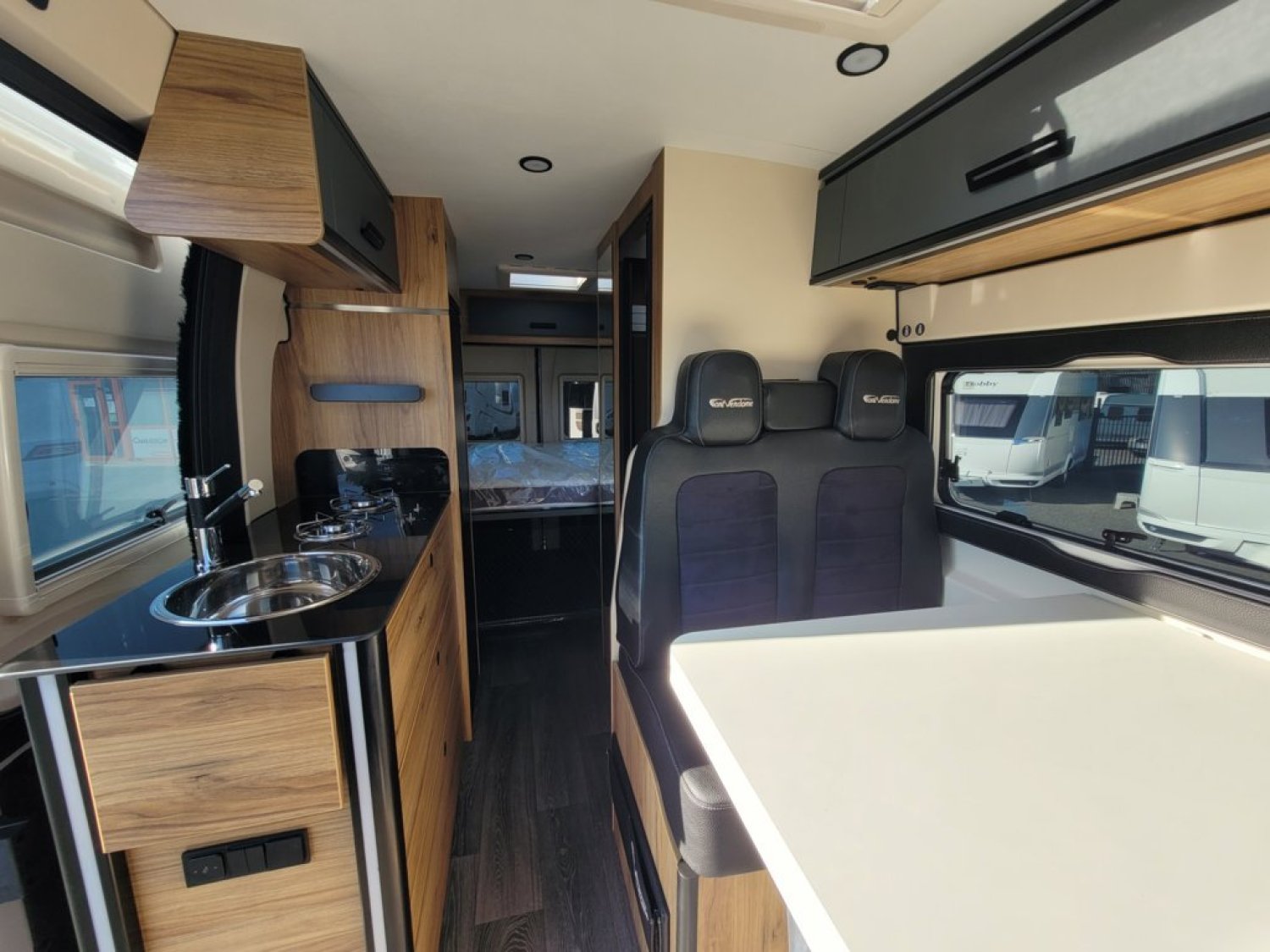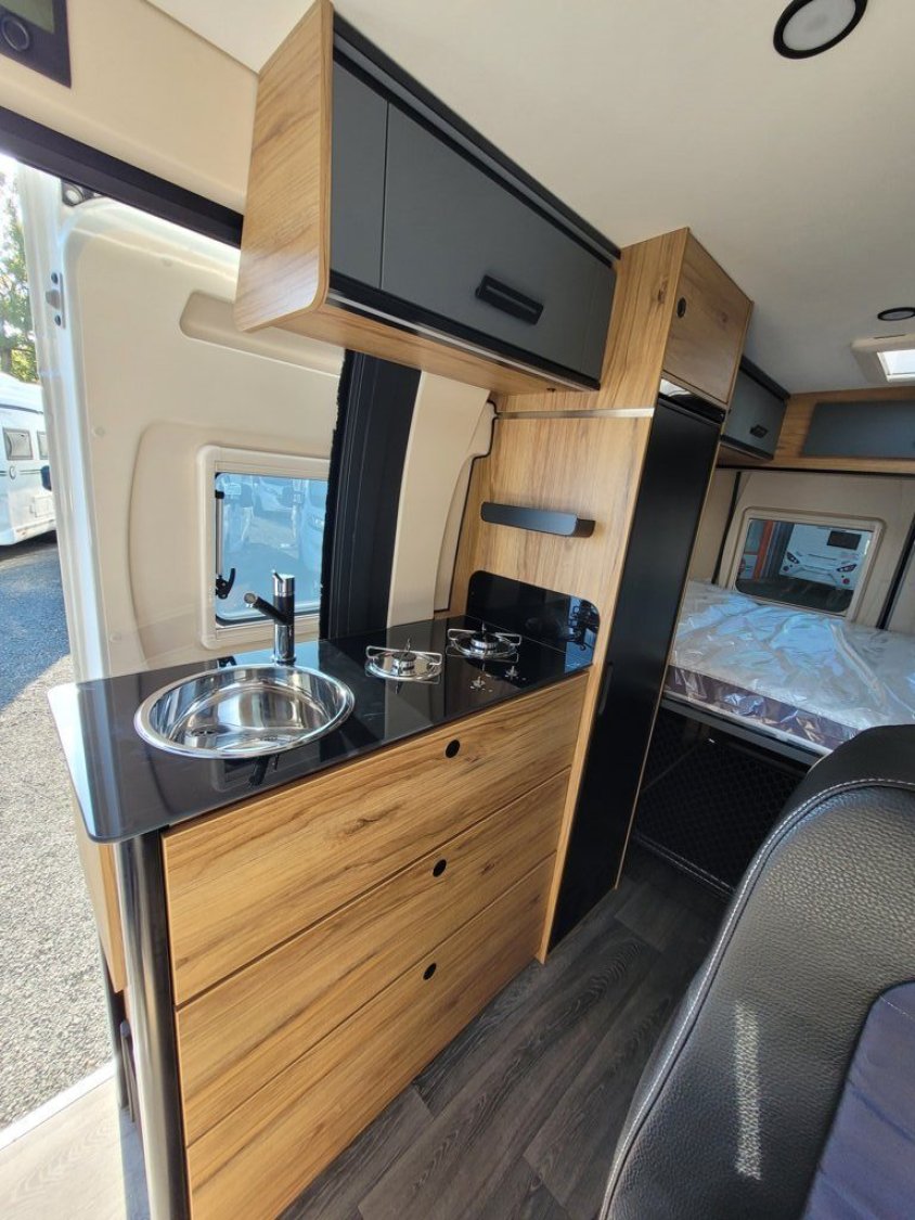 Douche modulable, Douche à vario, Lit arrière transversal, Lit dînette avant, Salon avant sièges pivotants, WC Cassette.