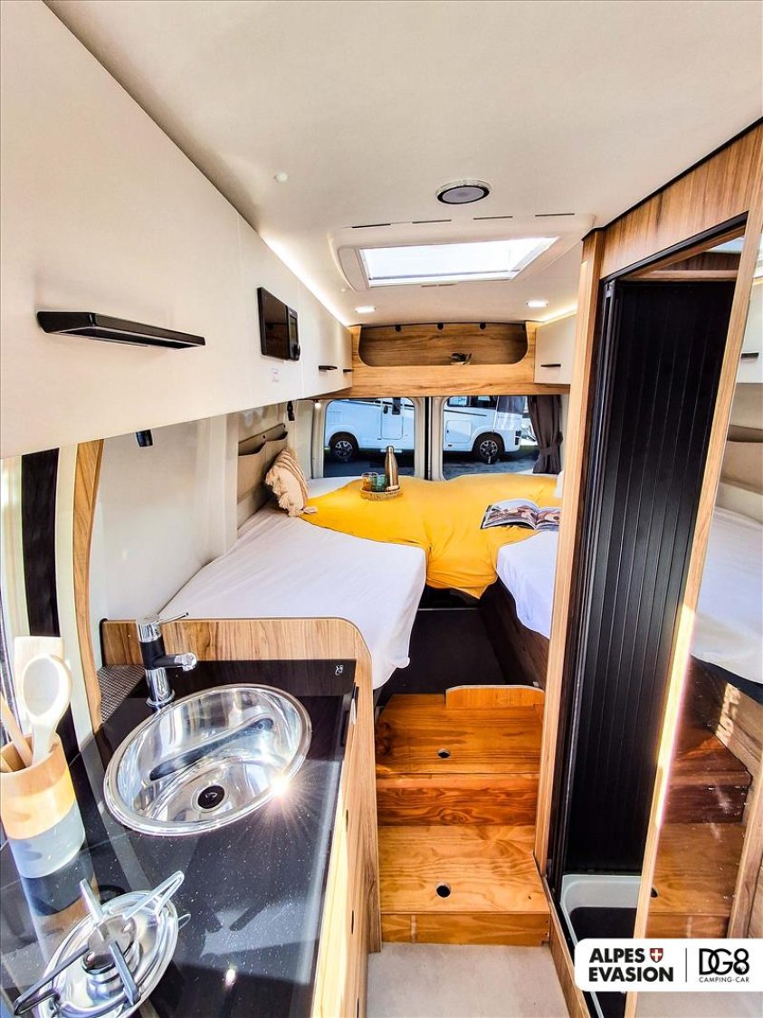 AUDIO CLASSIQUE, BATTERIE LITHIUM, BOITE AUTOMATIQUE, CAMEAR DE RECUL DANS RECTRO, COMBI 4 DIESEL, PACK LIVRAISONS EN SUS 559 E, PANNEAUX SOLAIRES, PEINTURE METAL CRIS, STORE