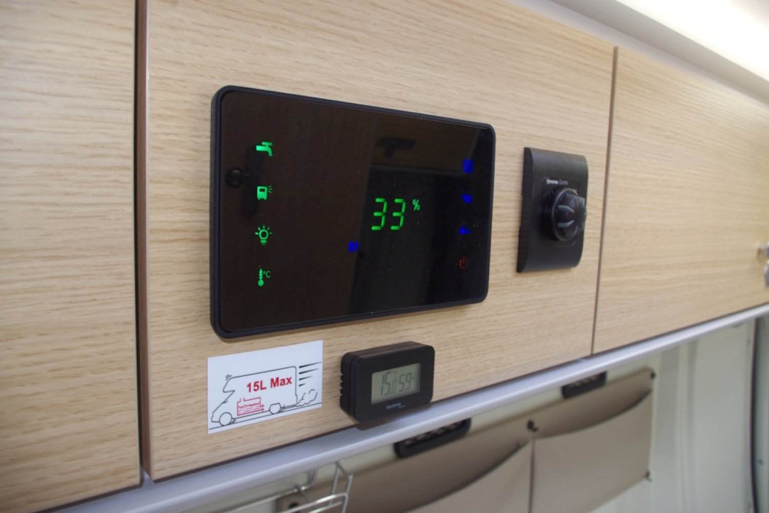 - Tableau digital de commandes (témoins charge des batteries, éclairages, pompe à eau, niveaux réservoirs EP et EU..)
