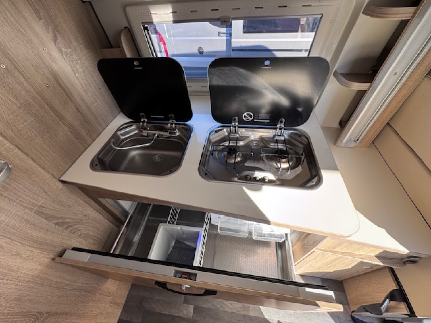 Fourgon, très belle cuisine, réfrigérateur, douche séparée