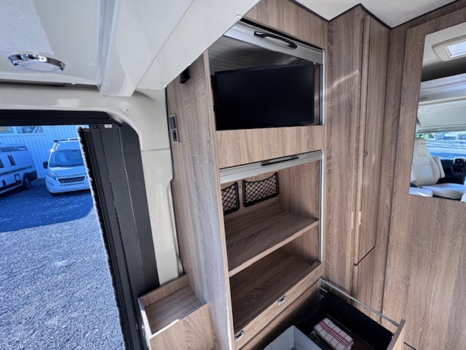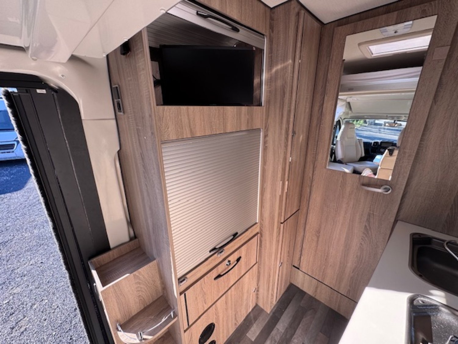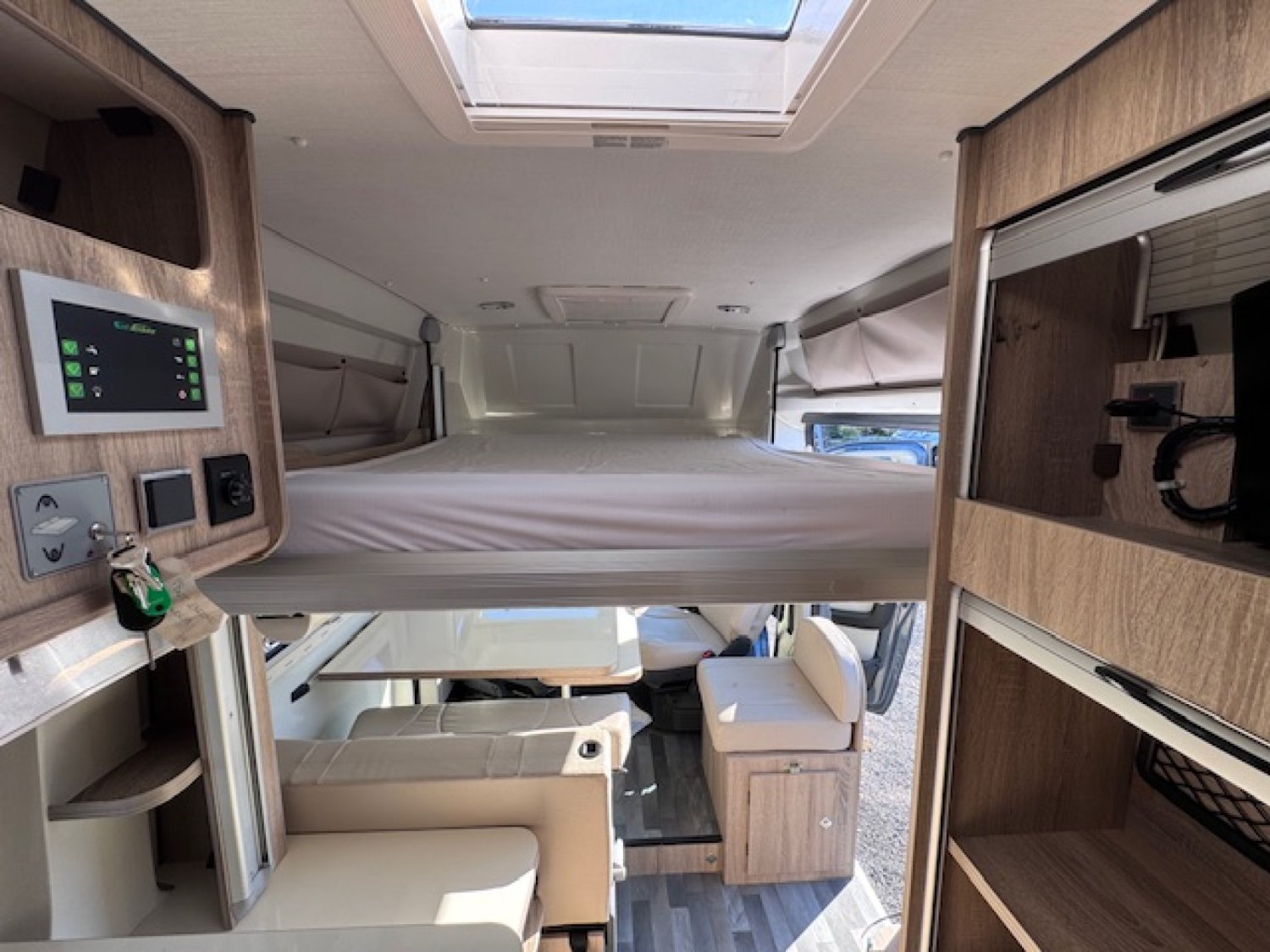 2 ème batterie cellule, Alarme, Antenne satellite automatique, Attelage, Caméra de recul, Climatisation cabine manuelle, Echelle, Eclairage extérieur, Fermeture centralisée, Hotte aspirante, Jantes alliage , Marche pied électrique, Moustiquaire de porte cellule, Panneau solaire, Peinture métallisée, Porte vélos, Régulateur de vitesse, Rétroviseurs électriques, Store extérieur, Stores plissés cabine, TV, Vitre electrique