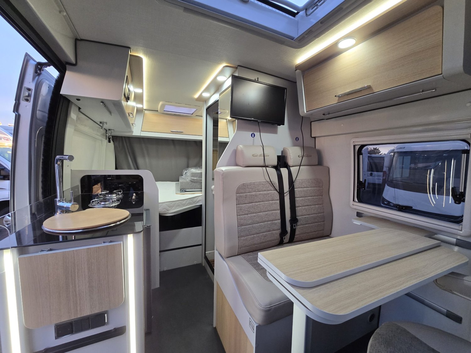 CARROSSERIE GRISE – SKYVIEW – TV – RADIO MULTIMEDIA DOUBLE DIN BLUETOOTH – STORE EXTERIEUR – PANNEAU SOLAIRE – JANTES ALU NOIRES – PORTE VELOS – ATTELAGE – CLIMATISATION PORTEUR – TRACTION PLUS – HILL DESCENT CONTROL – STORE PLISSE DE CABINE – CAMERA DE RECUL – GPS GARMIN – FEUX DE JOUR A LED – REGULATEUR DE VITESSE – DOUCHETTE EXTERIEURE – COMMANDE CHAUFFAGE CP+…