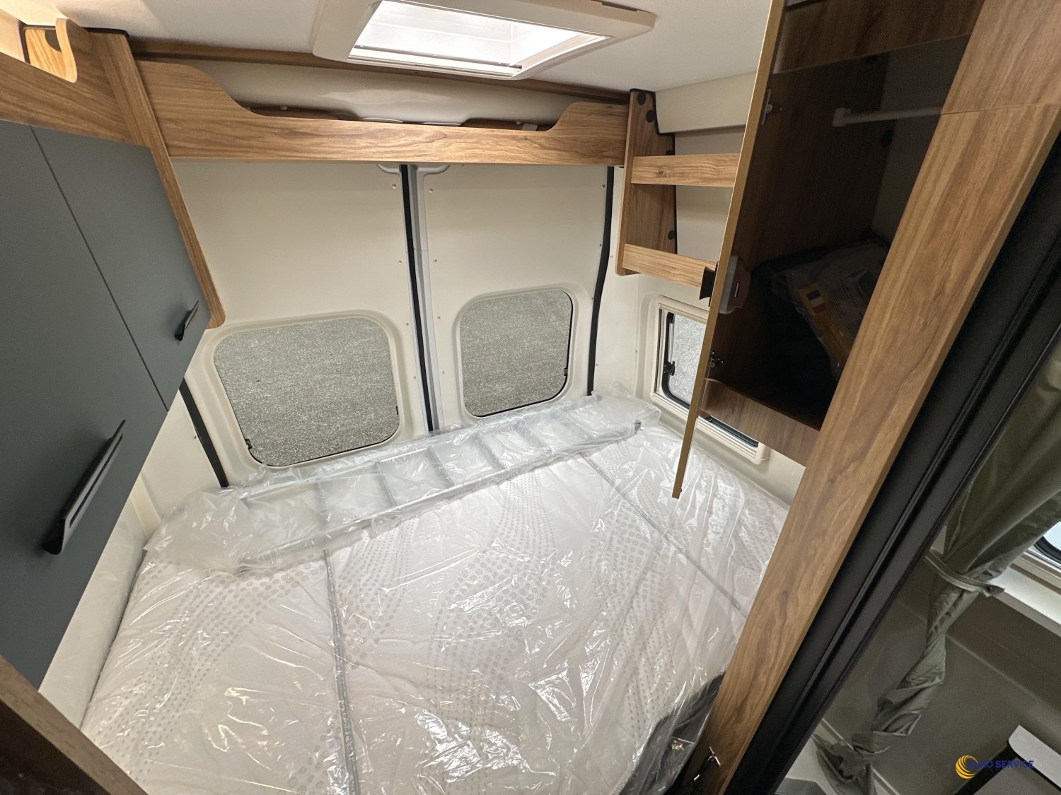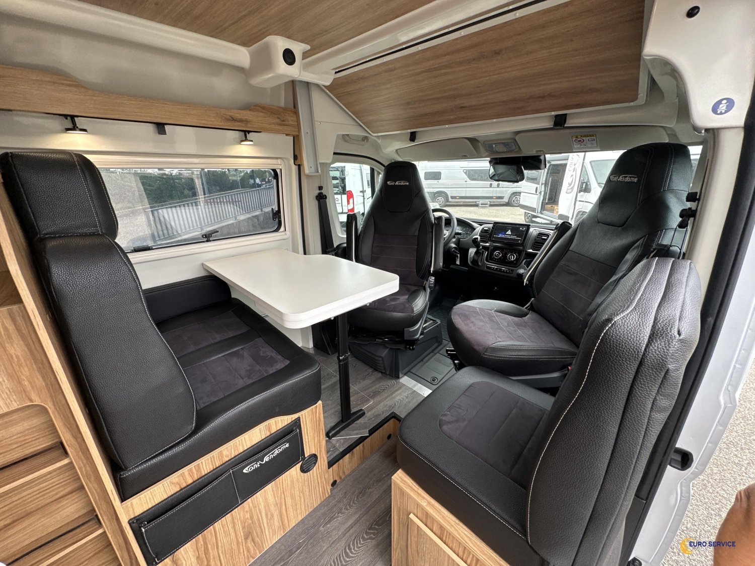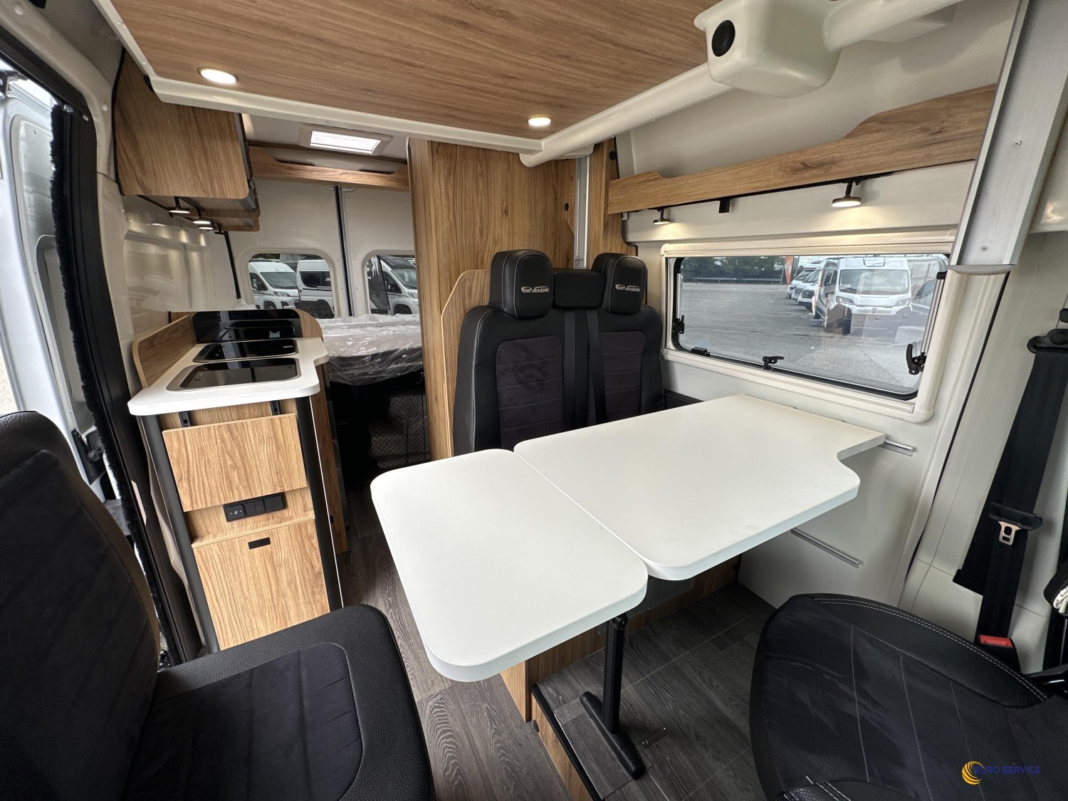 Doté d'une 5ème place carte grise de série, le Terravan peut accueillir 5 personnes en couchage, grâce à son intérieur parfaitement optimisé dans 6m de longueur. Son lit supérieur électrique vous permettra de moduler les lieux de vie sans effort. Les espaces cuisine et salle de bains sont pensés pour profiter au maximum de votre voyage.