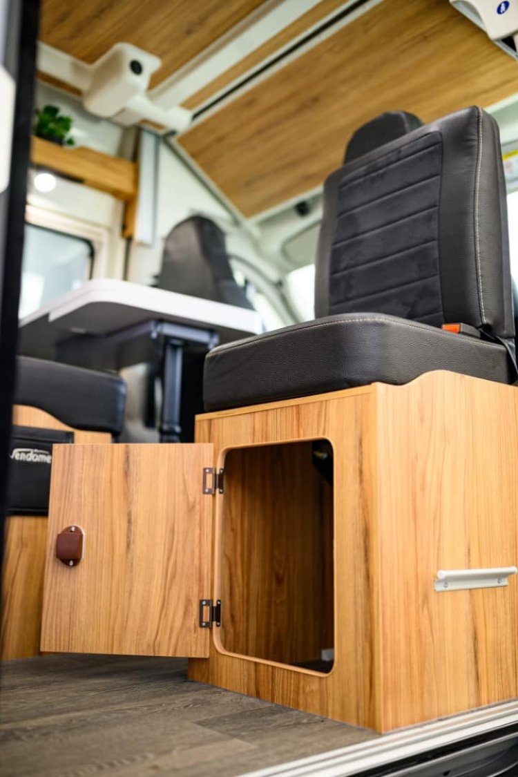 Quoi de mieux que partager ses découvertes et ses voyages en famille ou entre amis ? Doté d'une 5ème place carte grise de série, le Terravan peut accueillir 5 personnes en couchage, grâce à son intérieur parfaitement optimisé dans 6m de longueur. Son lit supérieur électrique vous permettra de moduler les lieux de vie sans effort. Les espaces cuisine et salle de bains sont pensés pour profiter au maximum de votre voyage.