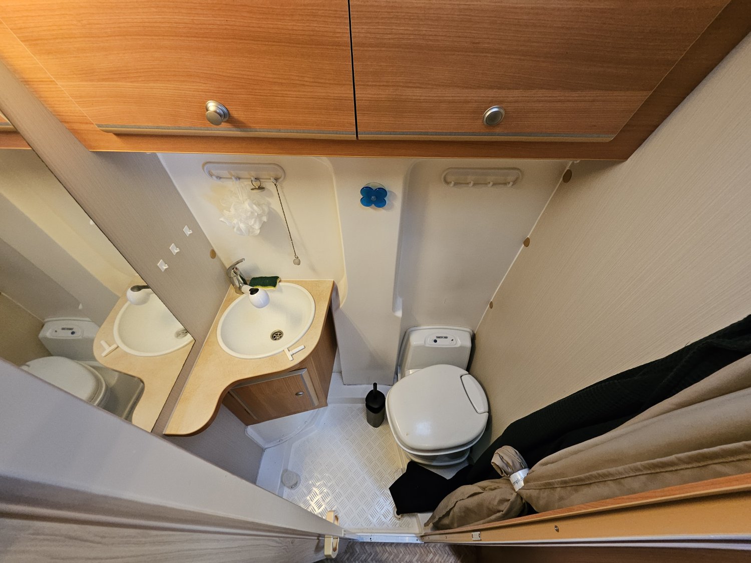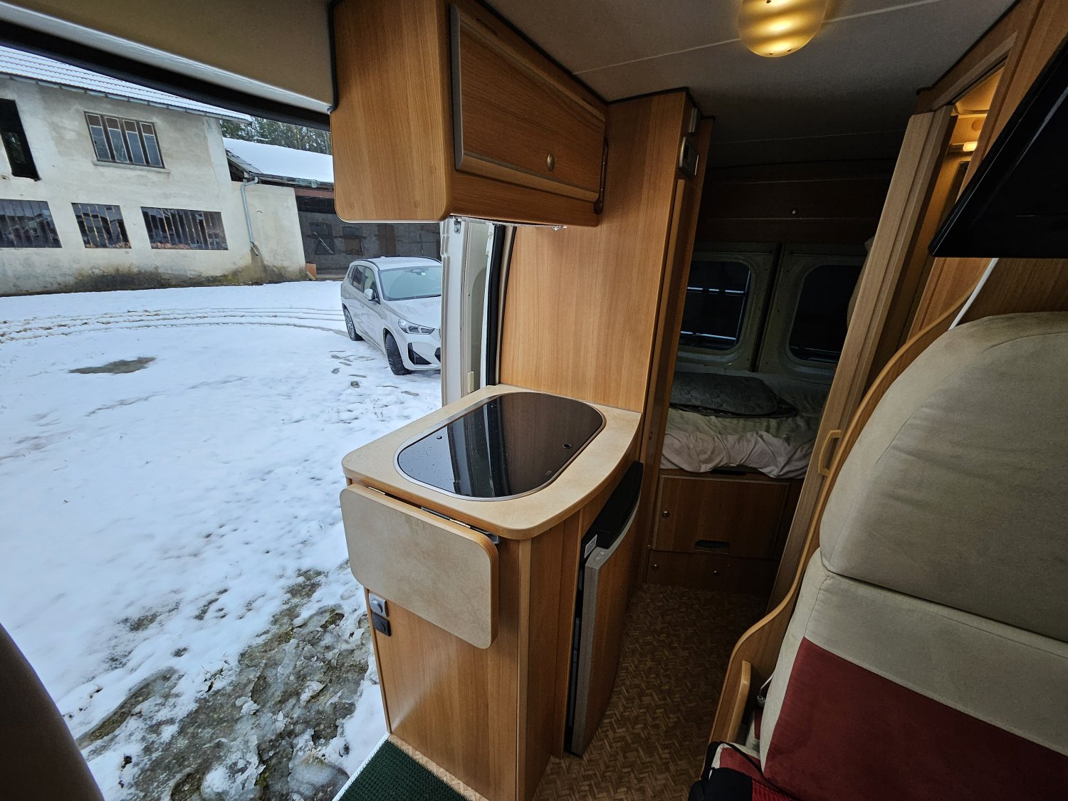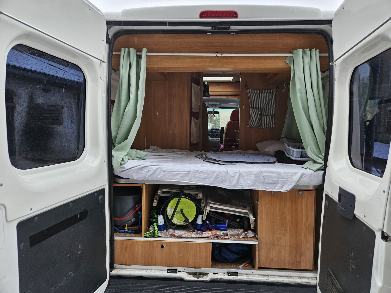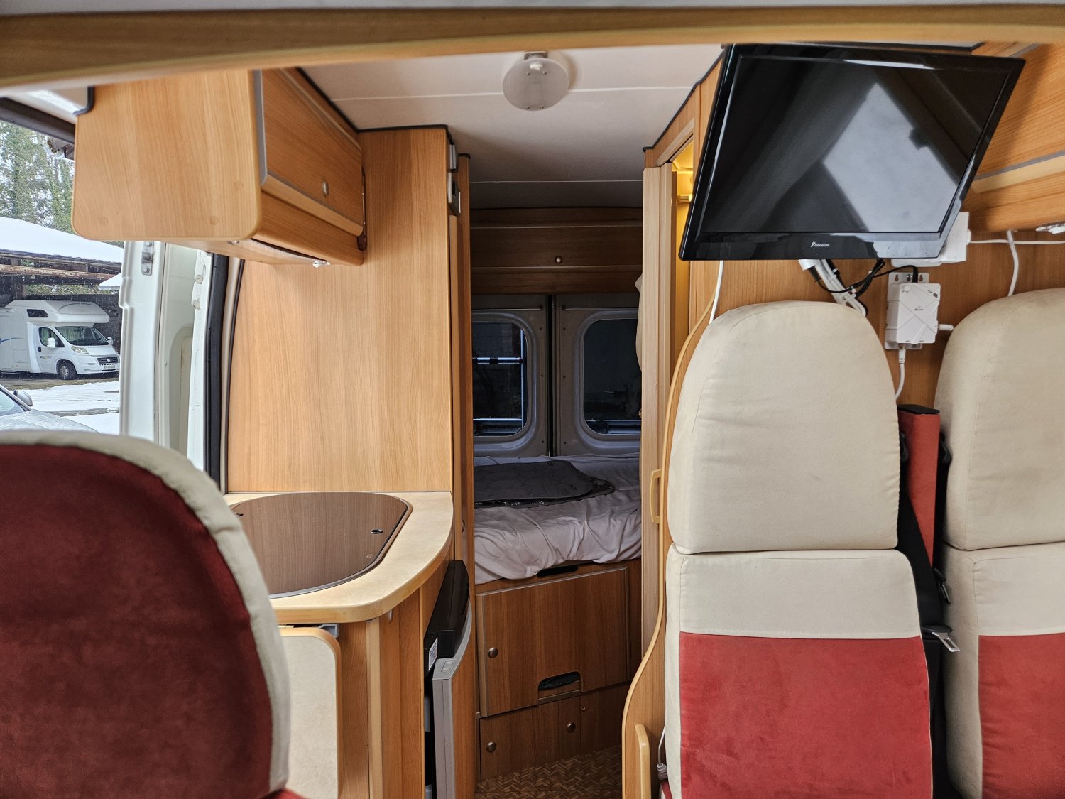 CHAUFFAGE CARBURANT, GAZINIERE 2 FEUX, ECLAIRAGE LED, PORTE VELO, REFRIGERATEUR TRI MIX, STORES PLISSES DE CABINE
