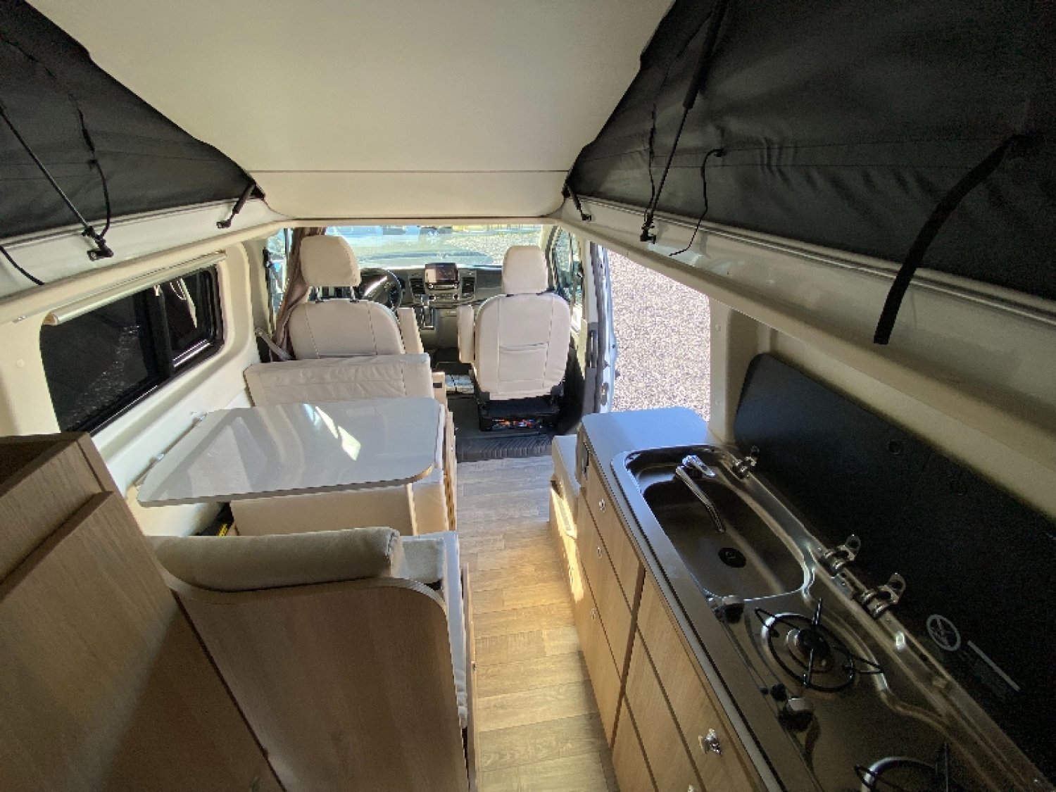 DREAM CAMPING CAR vous propose ce VAN DREAMER CAPLIFE SUR FORD TRANSIT CUSTOM avec toit relevable , il a tout d'un grand camping car dans une petite dimension , avec sont salon 4 places sa cuisine avec deux feux , sont frigo à compression de 51 l , ses toilettes de nombreux rangements , la douchette ar sont toit relevable et la dinette qui peu faire un couchage pour deux aussi.