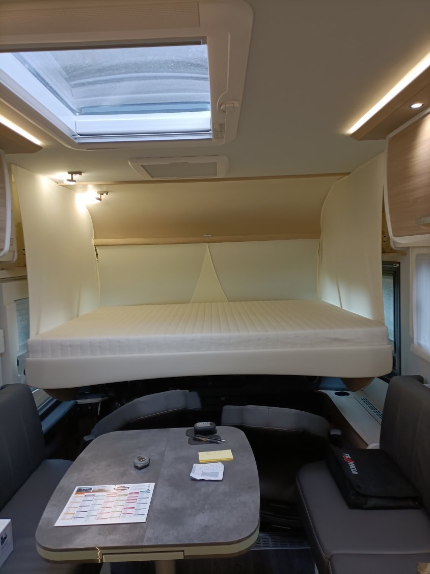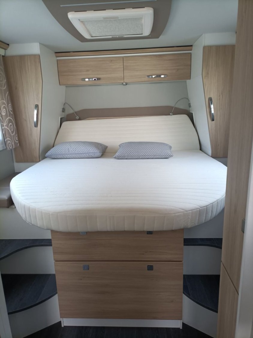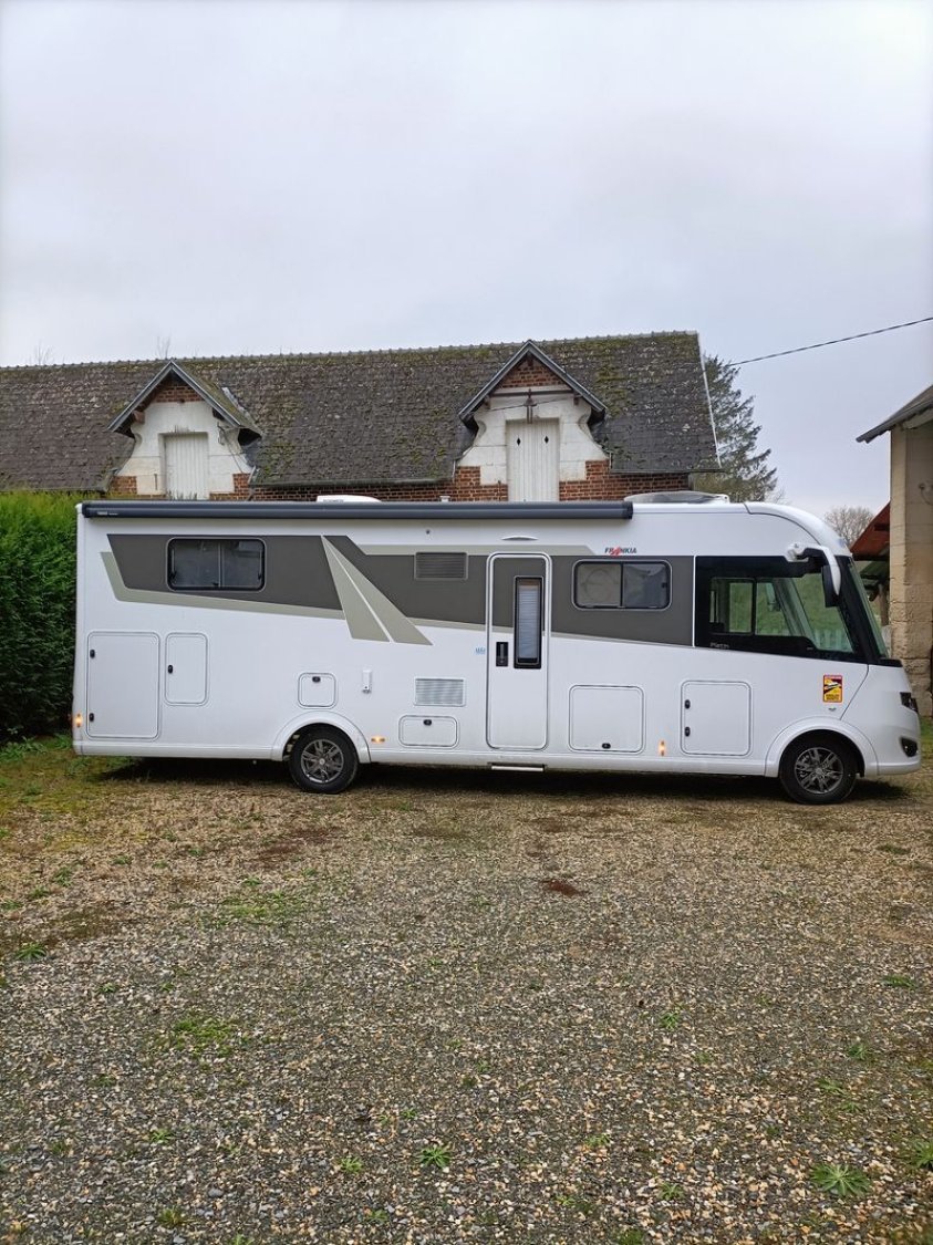 Frankia 8400 QD sur porteur Mercedes sprinter poids lourds puissance 177 DIN, 7 CV fiscal, équipement complet avec toutes options : boîte automatique 9 rapports, suspensions pneumatiques AR, vérins hydrauliques EP, roue de secours avec fixation sous la soute arrière, roues jumelées à l'arrière, clim. cabine + cellule, régulateur et limitateur de vitesse , caméra de recul 360°, grand frigo + congélateur (les portes s’ouvrent aussi bien à droite qu’à gauche), four à gaz (jamais servi), éclairage LED, panneaux solaires (4x110W), batterie au lithium (2x110 Ah), éclairage extérieur LED, chauffage central ALDE, double plancher chauffé et isolé, plus de 2 mètres de hauteur sous le plafond sur toute la surface du camping car, climatiseur Dometic 220 W, crochet d'attelage Mercedes, 2 bouteilles GPL avec niveau de remplissage, un verseur de gaz, une sortie de gaz à gauche et une sortie de douchette à droite, ventilateur pour le frigo en cas de chaleur, store extérieur 5,50 m (manuel et électrique), 2 cassettes double WC, booster de charge 90 AH, convertisseur 1700 W, moustiquaires à toutes les fenêtres, lanterneaux et porte de cellule, réservoir gasoil 93 l, trappes de service avec enrouleur électrique 25 m, enrouleur pour tuyau à eau 15 m, store pare brise électrique, lit pavillon électrique, double WC en céramique, télévision chambre et salon, côté droit arrière : panier en métal pour provisions etc.. Turbo vent qui tourne aussi bien à droite qu'à gauche et qui sert de hotte (c'est génial). Frigo Trimix qui sert pour la batterie, le gaz et l'électricité. Nécessite ADBLUE. Pour tout autres renseignements n'hésiter pas à me contacter pour plus d'informations ou de photos. Véhicule comme neuf, stocké à l'abri.