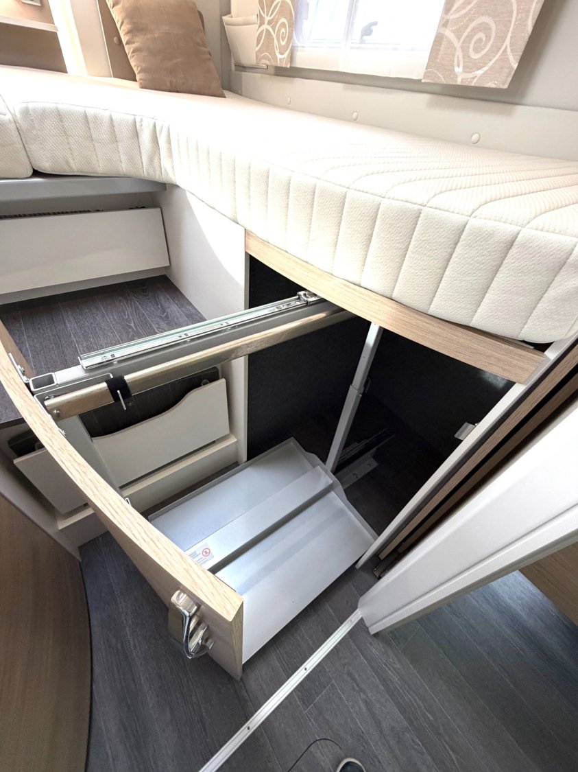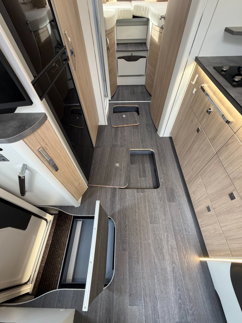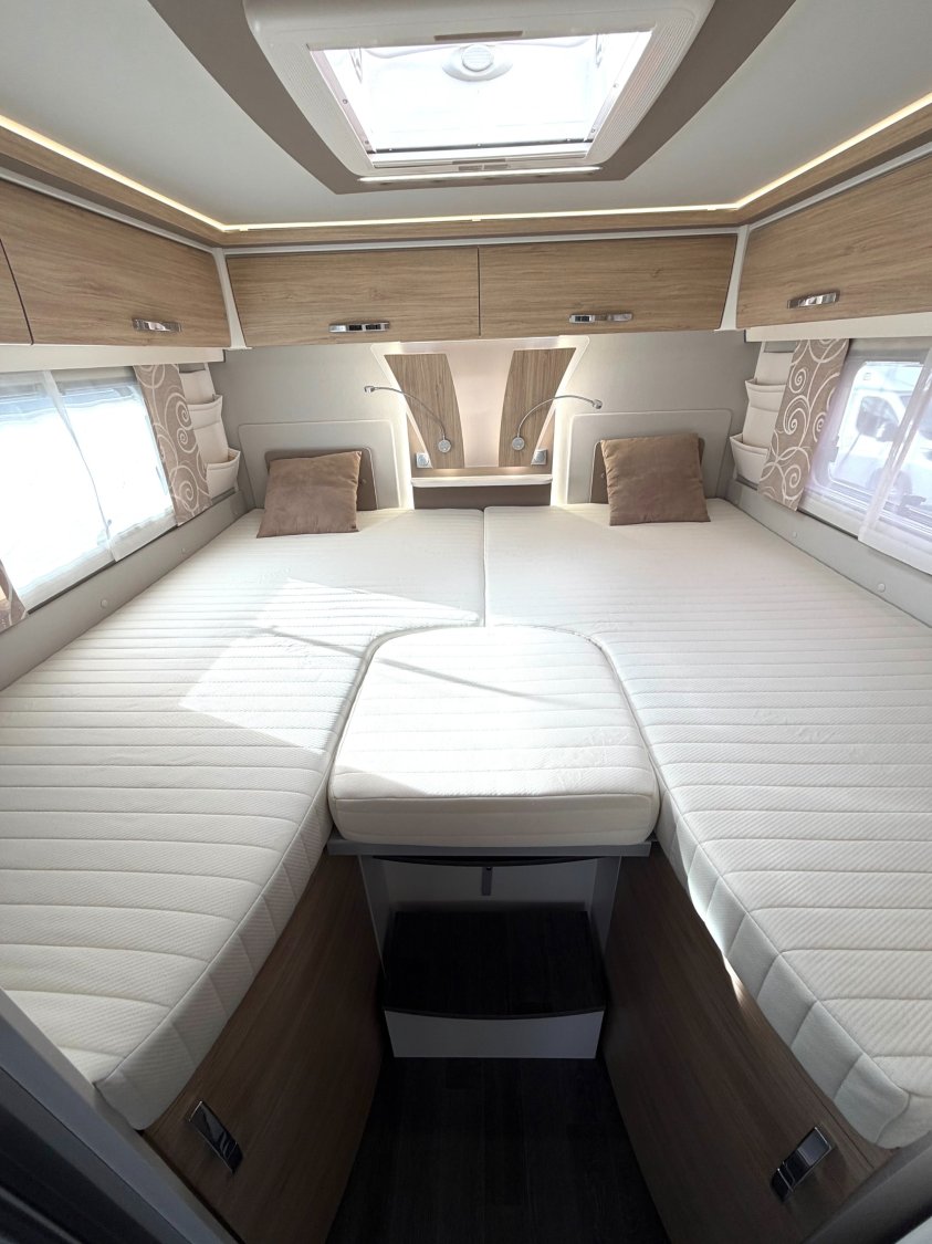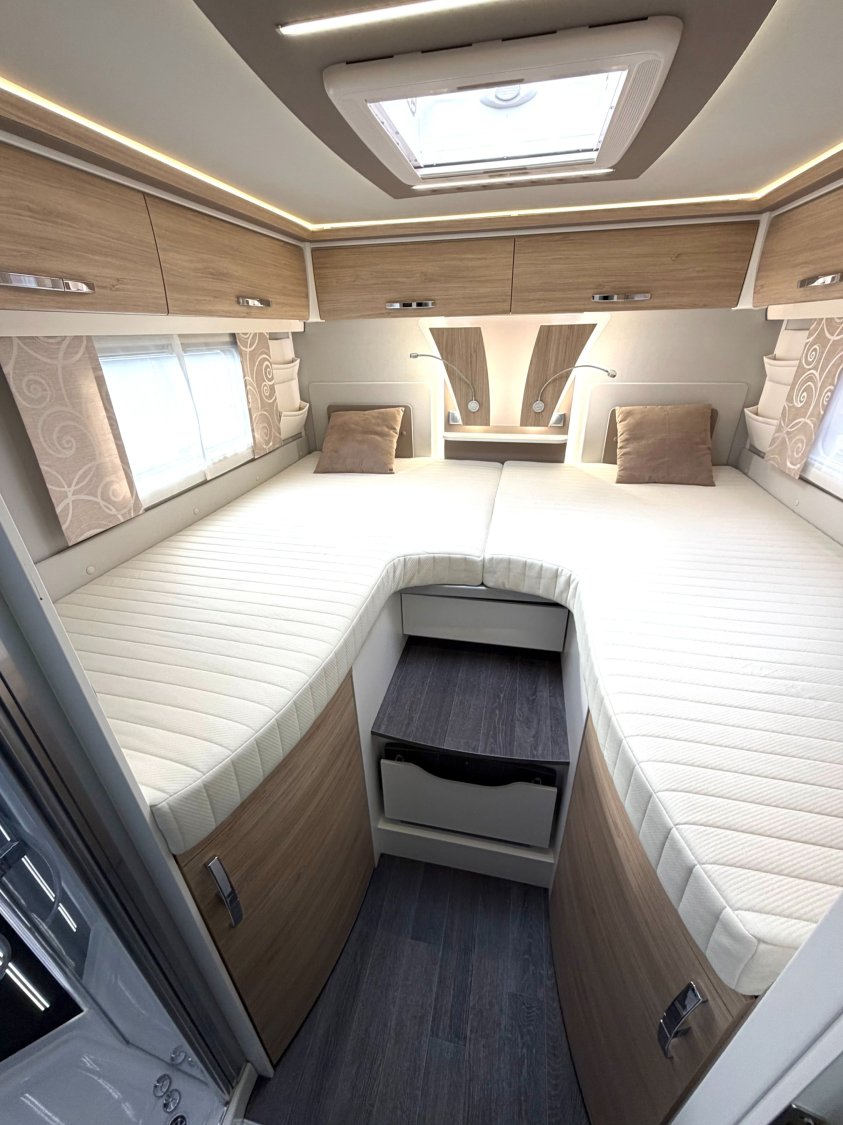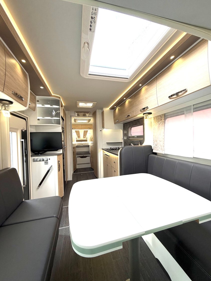 Le Haut de gamme Allemand en double plancher, maxi salon, maxi salle de bain avec beaucoup de rengagements, intérieur lumineux et moderne.