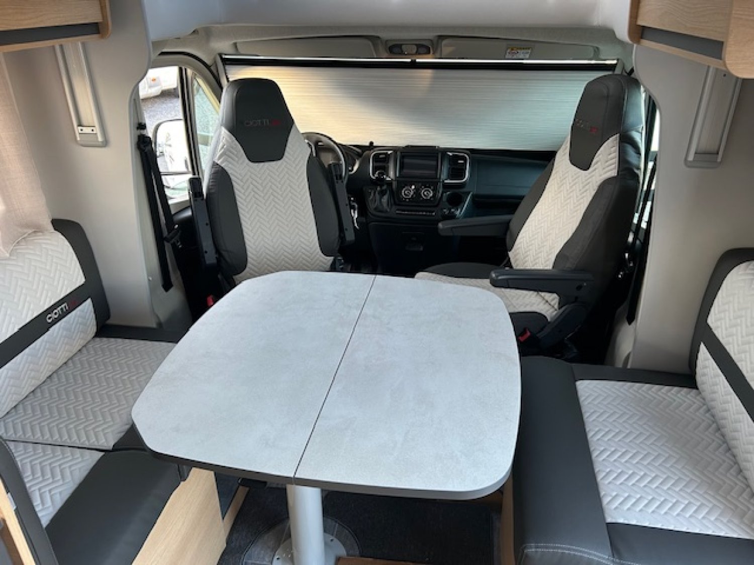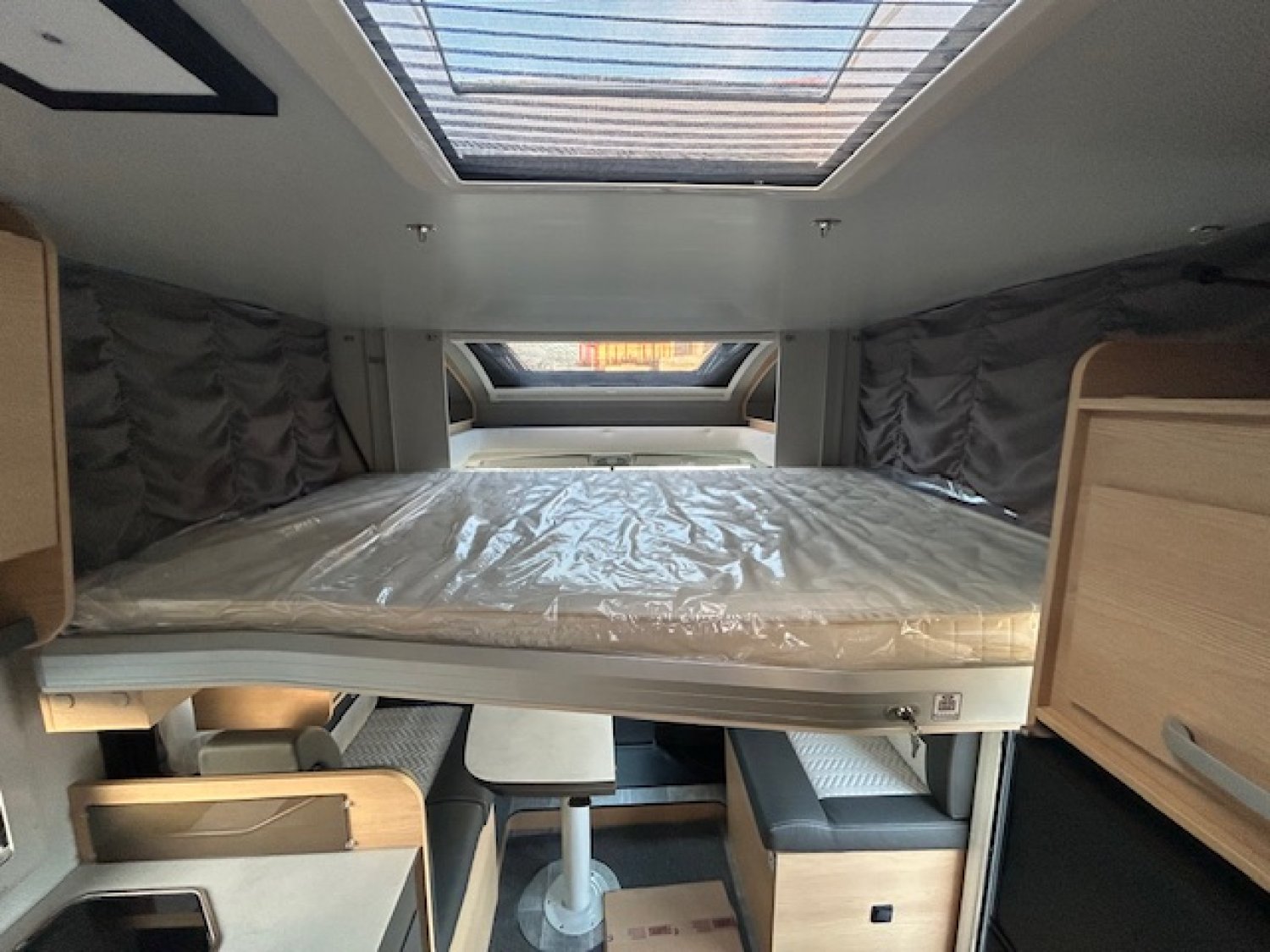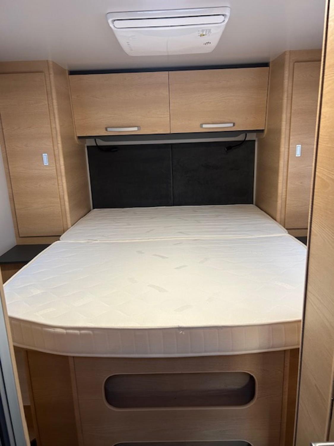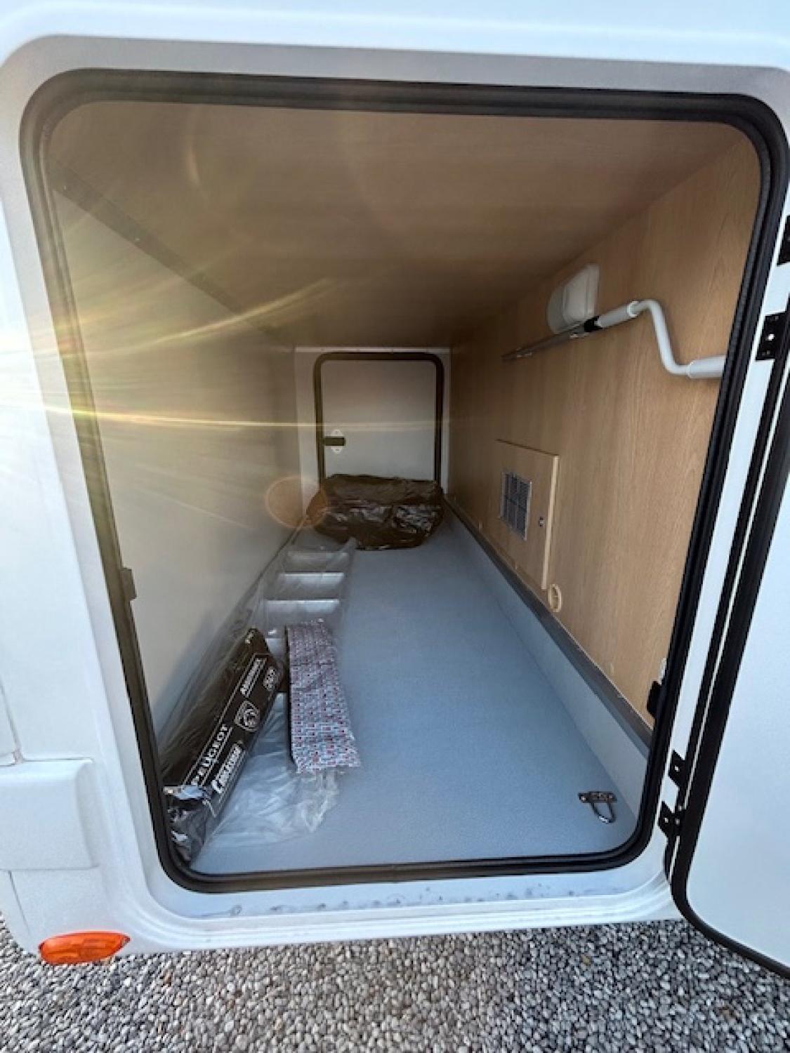 Porte cellule vitrée avec 2 points de fermeture et centralisée - caméra de recul - façade arrière-« style » avec feux Led - Sellerie elba - Maxi lanterneau Sky Wiew - Climatisation cabine - ESP avec aide à la montée/descente, - Traction + - régulateur de vitesse - 2 Airbags - pré-équipement radio - Suspensions AR renforcées - Housses sur sièges cabine - Eaux usées chauffées - Moustiquaire porte cellule - Sommier à lattes - Pare-chocs peint - éclairage extérieur LED - commande Truma 4000CP+ Radio 6.8“ - Duo control - rideaux occultant cabine - Tapis cabine et cellule - Jantes alu 16’
