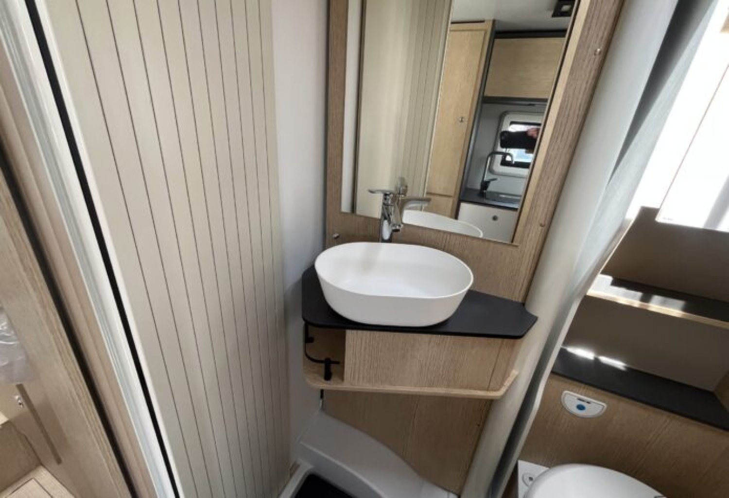 DOUCHE ET WC SEPARES PAR PAROI AMOVIBLE