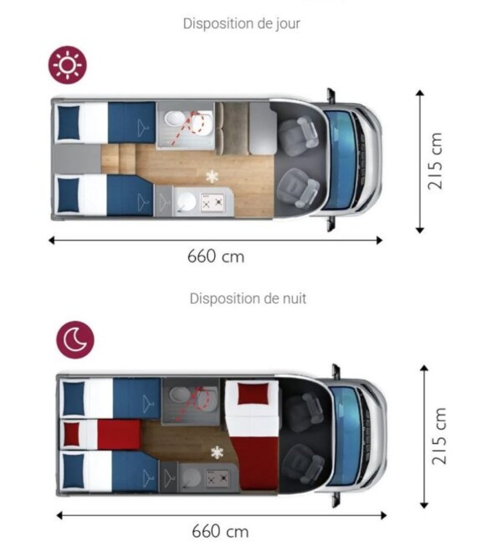 Grâce à sa forme compacte, sa maniabilité vous permettra de circuler ou de vous garer facilement. Vous profiterez des lits jumeaux très confortables au profit d’un grand couchage à l’arrière idéal pour vous garantir un sommeil en toute tranquillité. Son espace dinette agréable et convivial se transforme également en couchage supplémentaire grâce à son lit pavillon. Sa cuisine fonctionnelle grâce à ses systèmes de rangements optimisés est équipée d’une plaque de cuisson 2 feux gaz, un évier inox, un grand réfrigérateur à compression. Son coin toilette agréable avec WC, Lavabo et douche. Sans oublier sa soute volumineuse idéale pour ranger vos vélos, de retour de balades et ses nombreux rangements astucieux !
