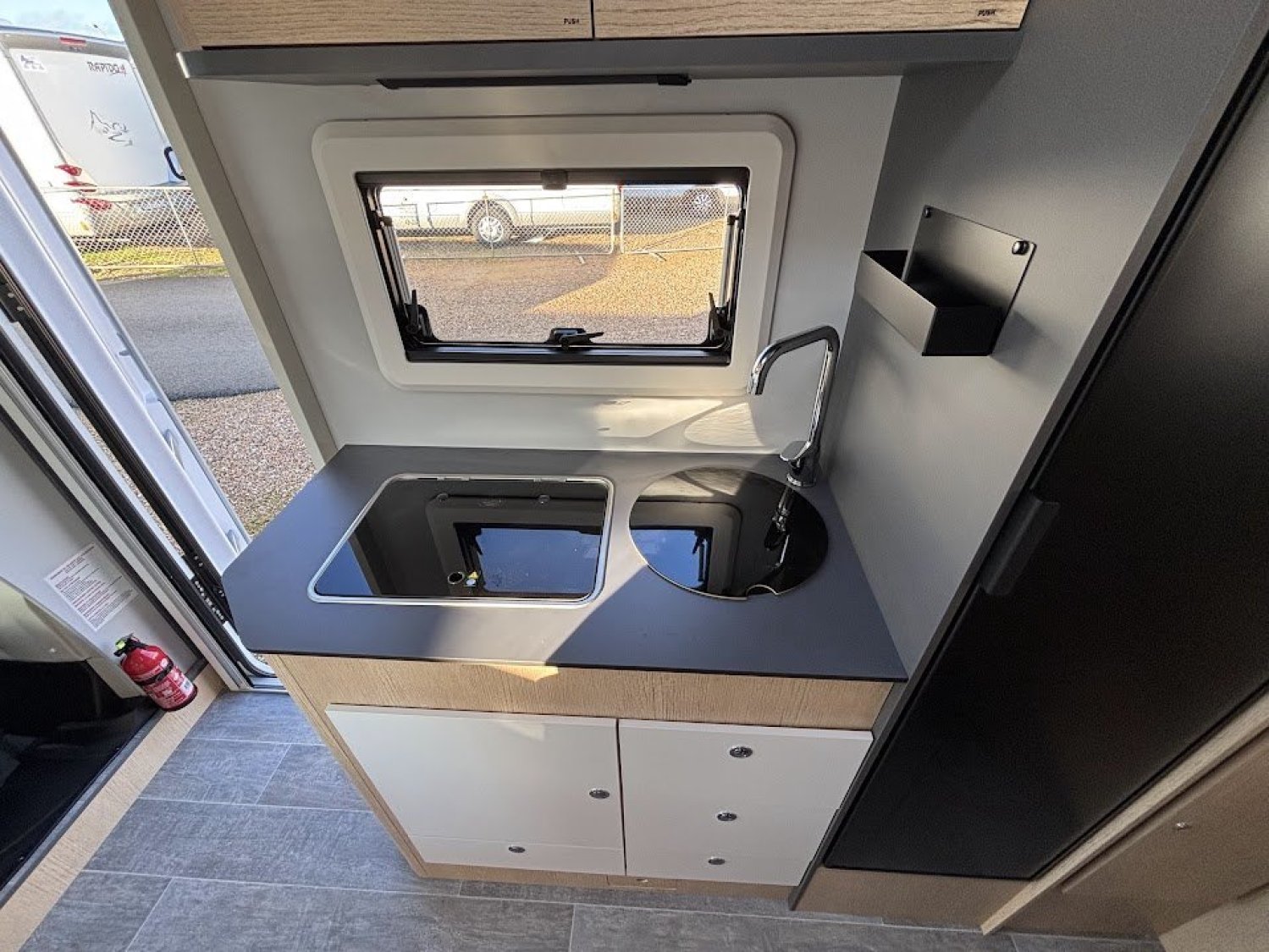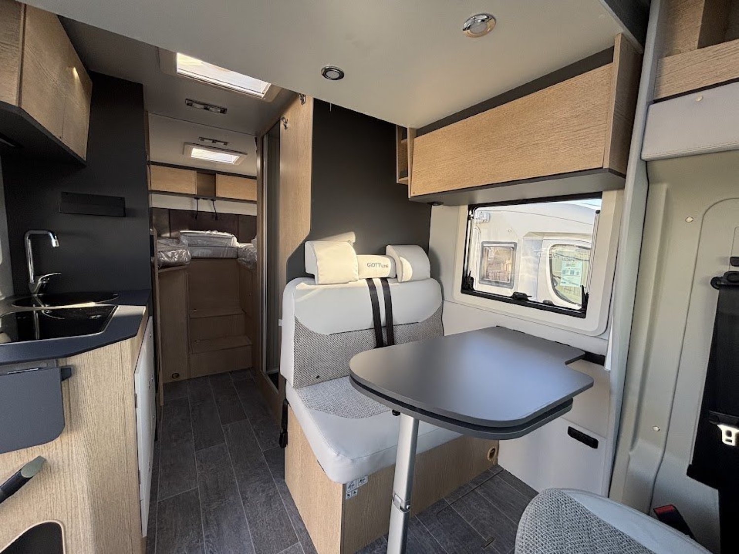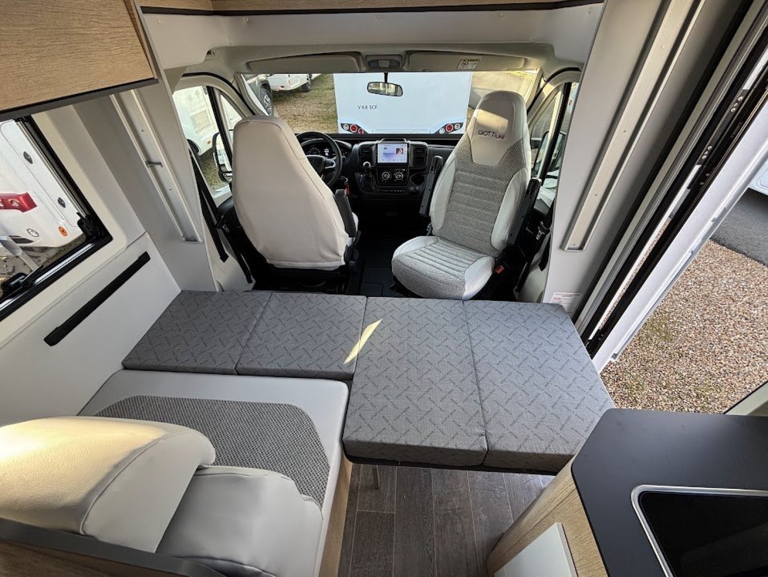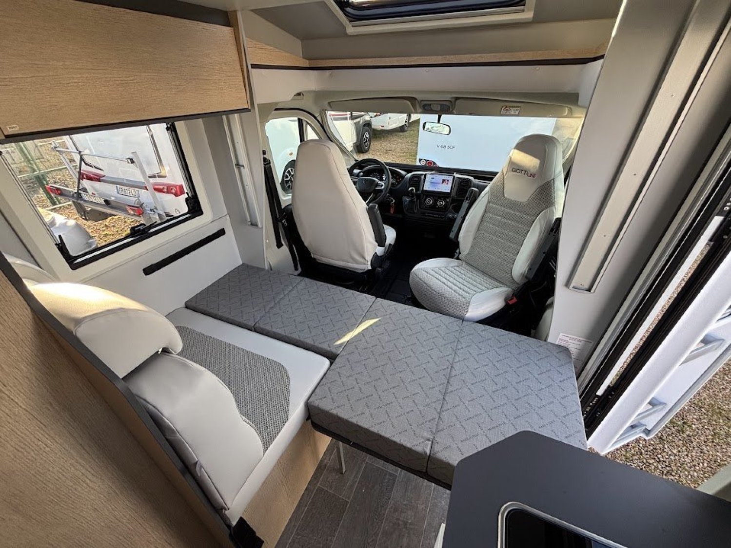 Cuisine en long, Douche à vario, Lit dînette avant, lit jumeaux, lit pavillon, Maxi salon, Salon avant sièges pivotants, WC Cassette.