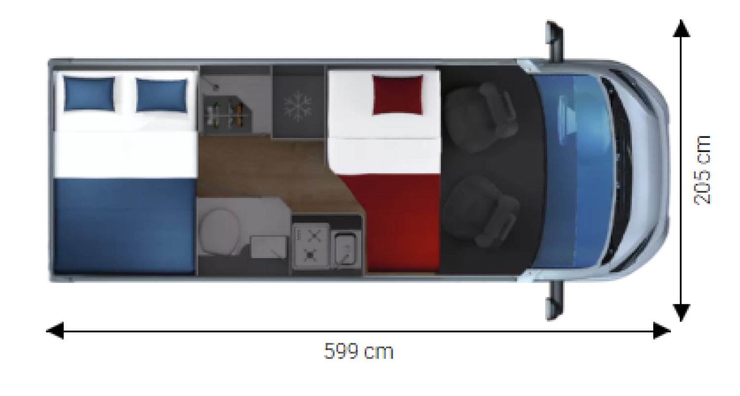 - Dimensions : L 5.99m x l 2.05m x h 2.62m