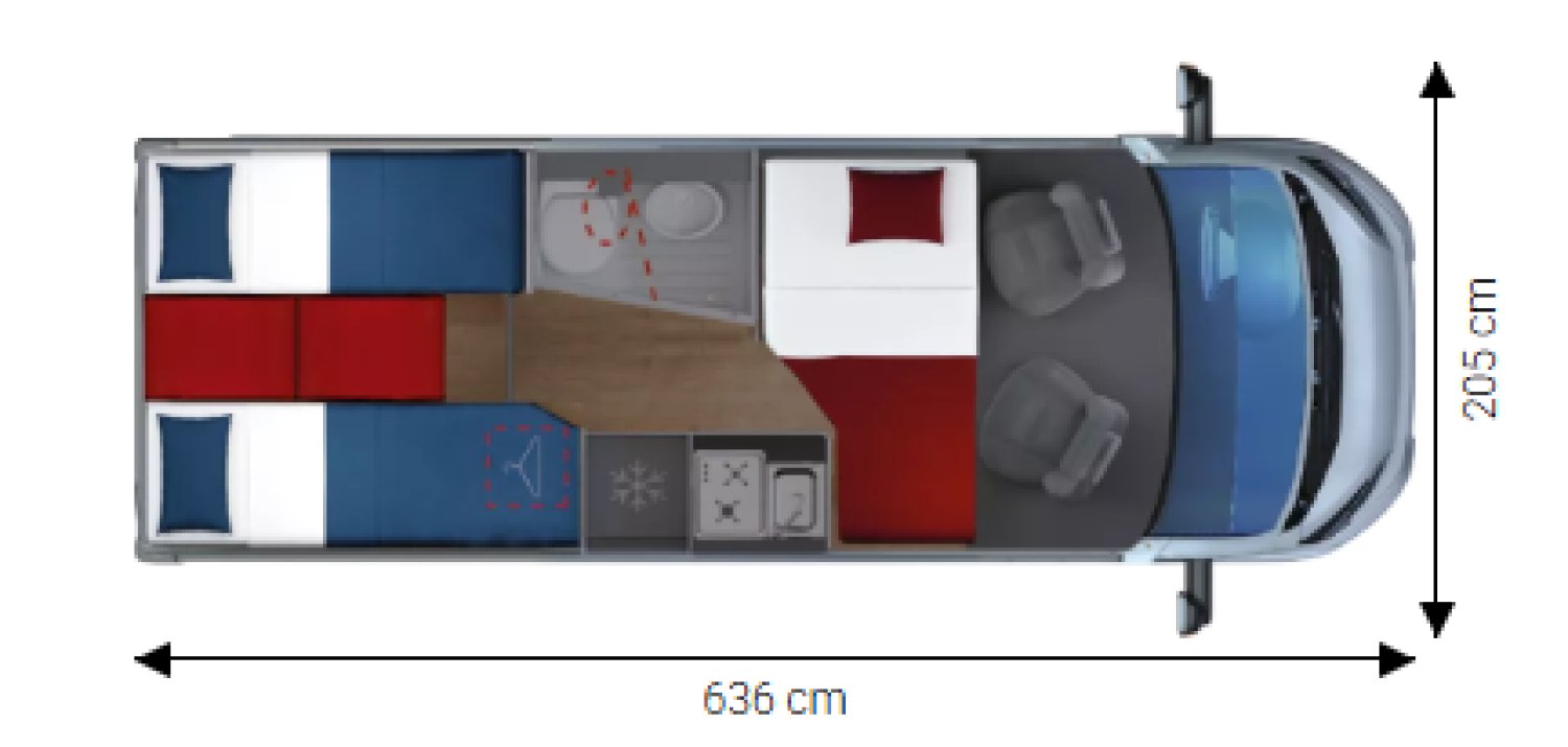 - Dimensions : L 6.36m x l 2.05m x h 2.62m