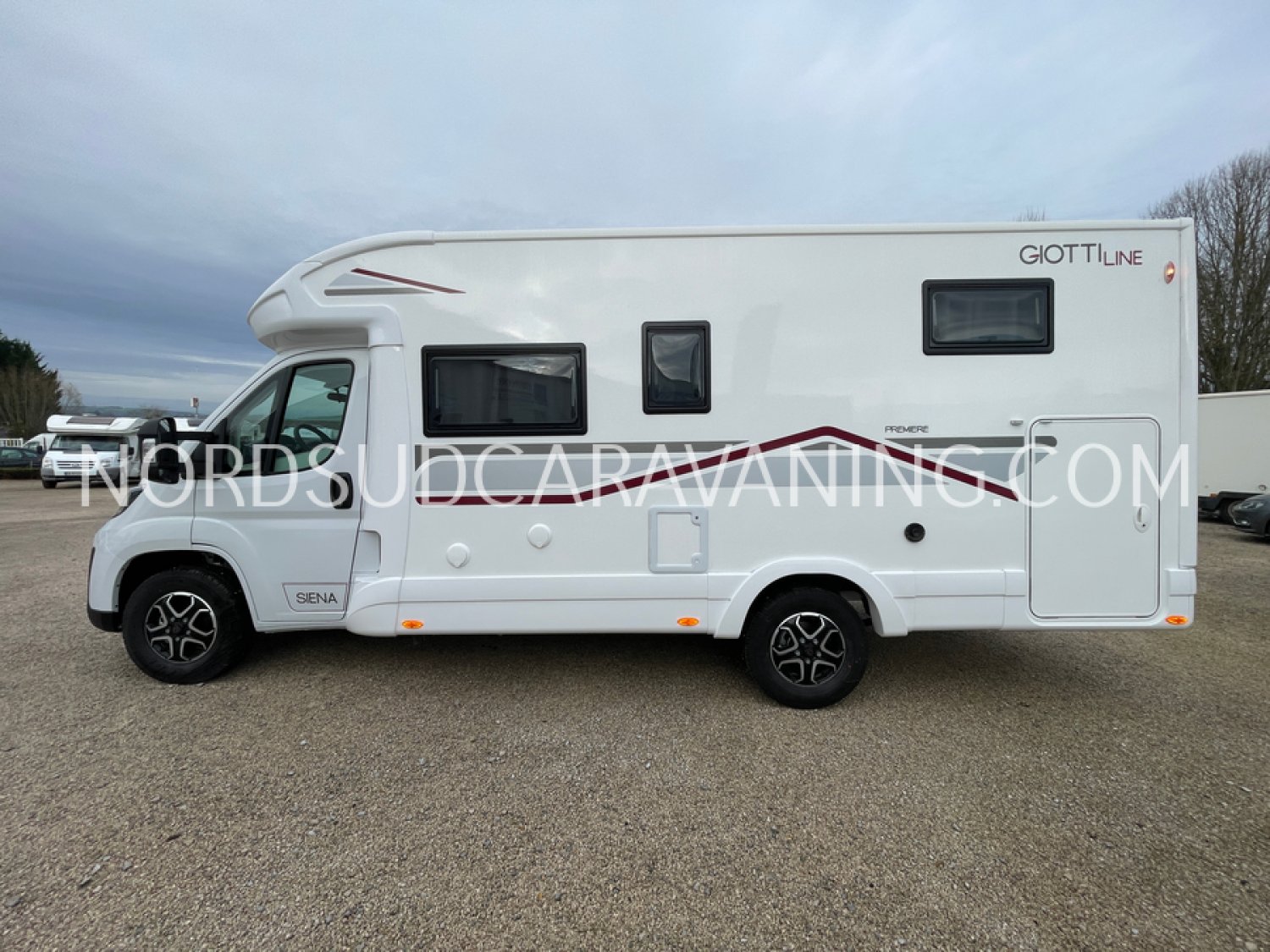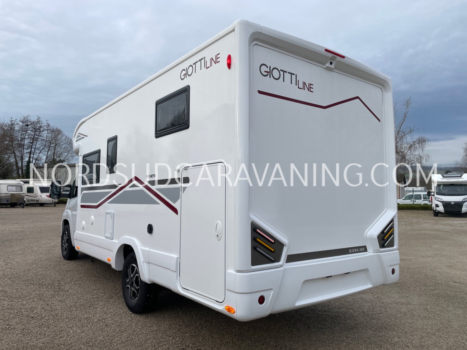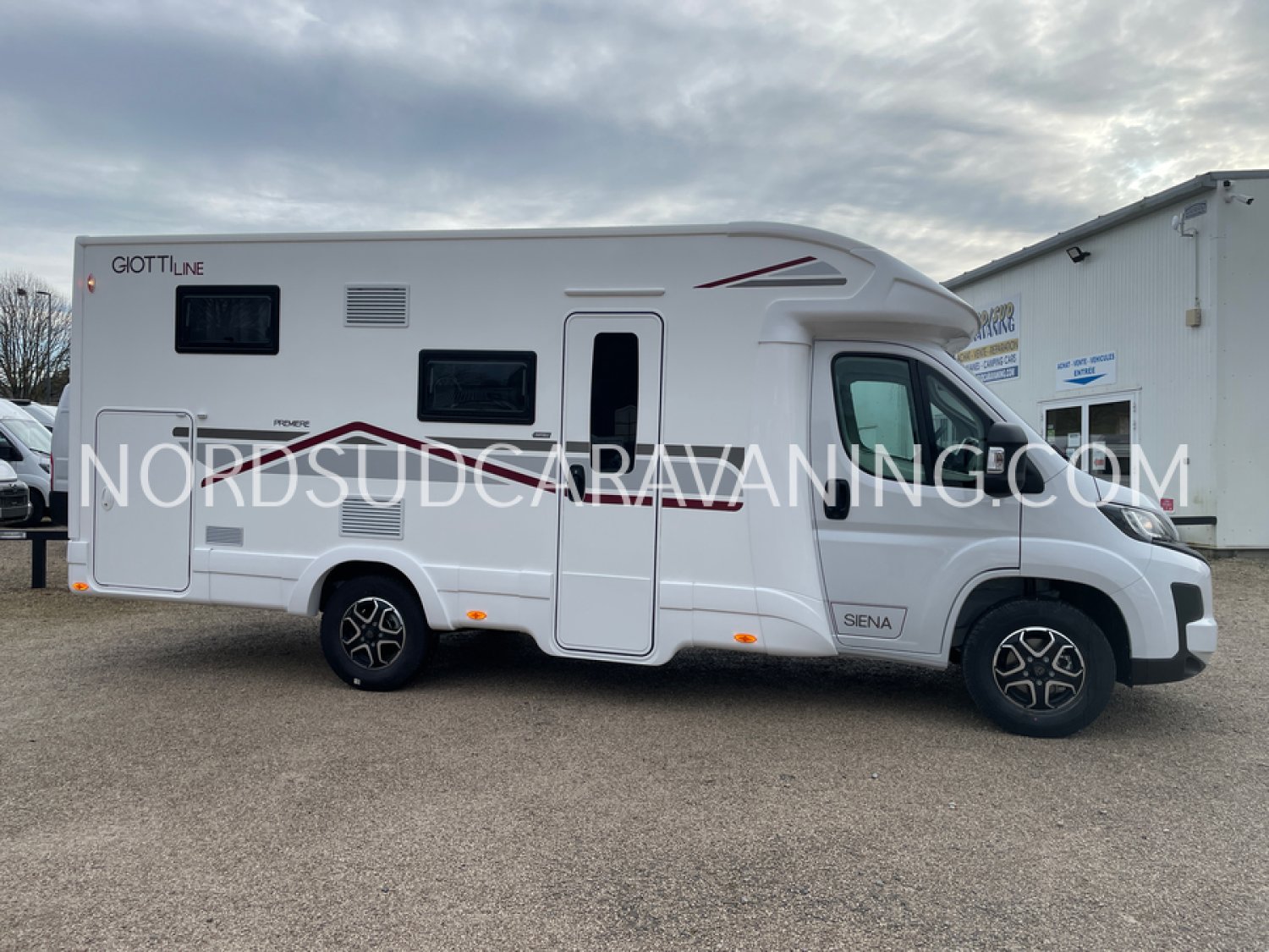 Nouveauté 2026 magnifique Camping-car profilé GIOTTILINE SIENA 385 Première Edition, 6.99m, Lits jumeaux, Lit pavillon, Douche spacieuse, Grand frigo, Caméra de recul, Soute garage…