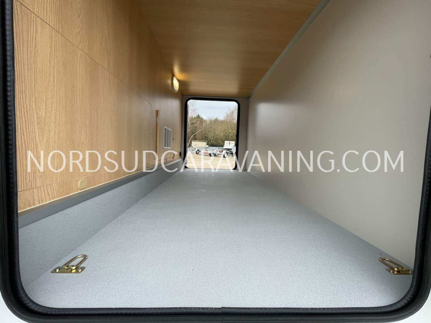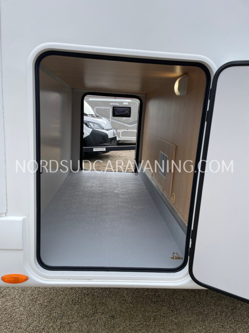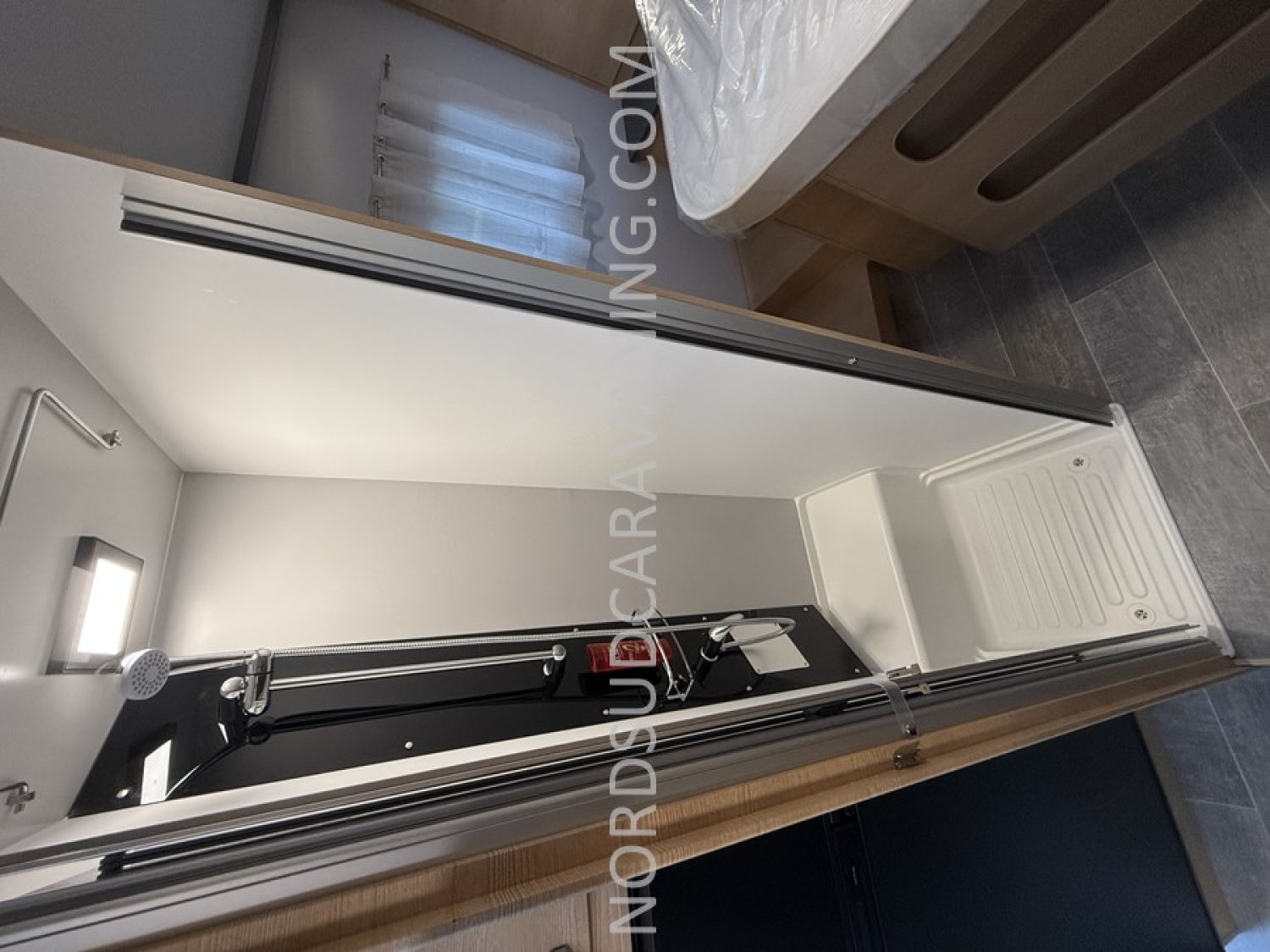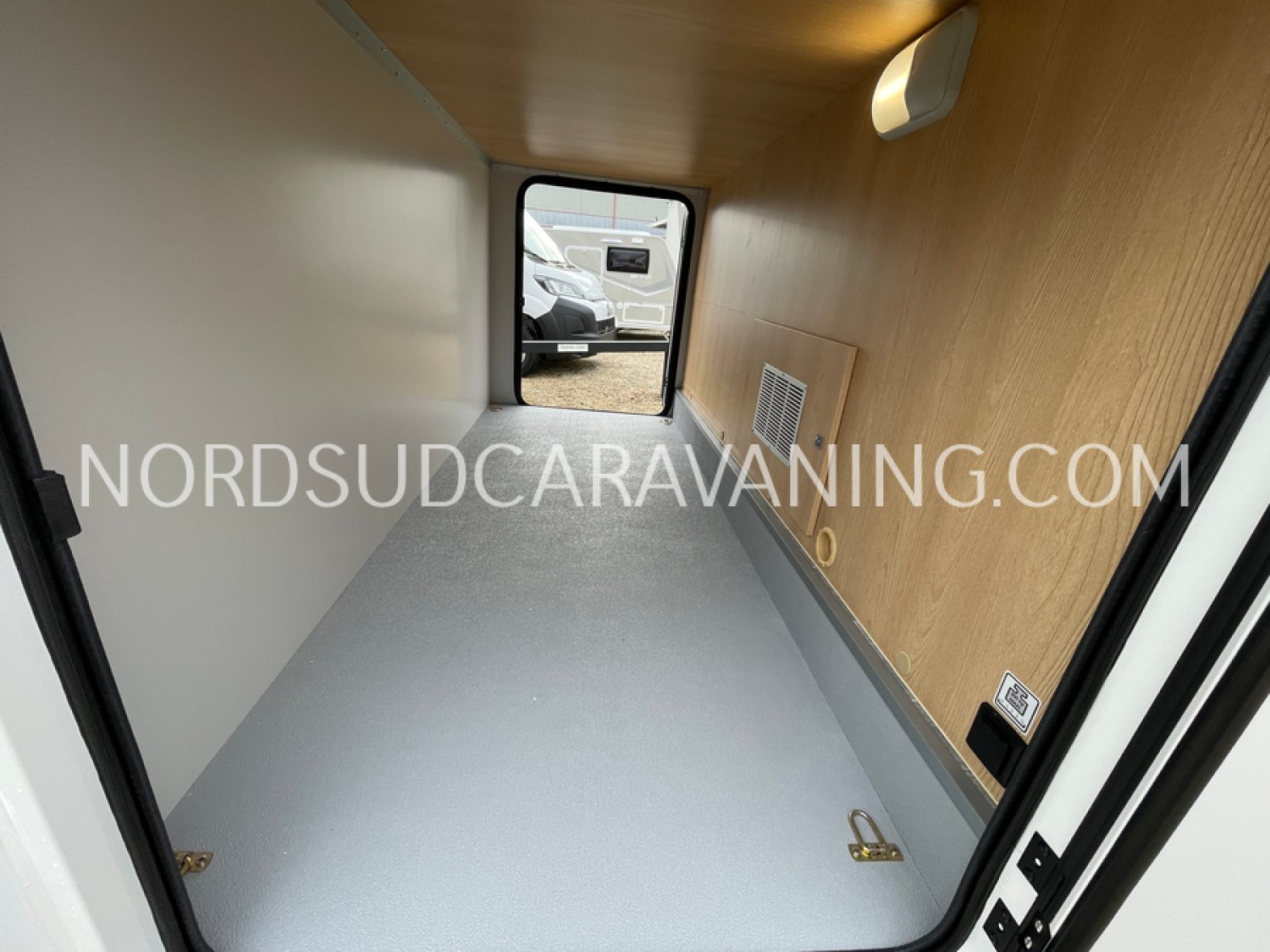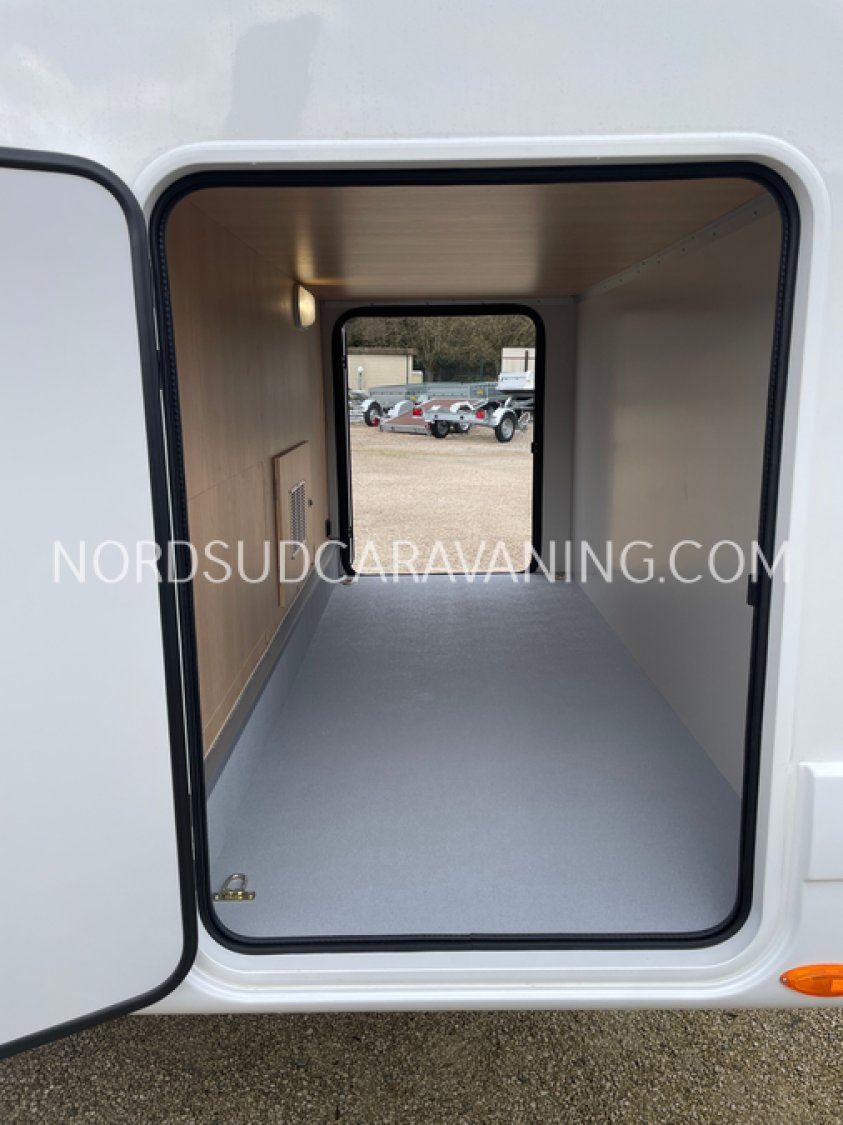 Il est doté également d’une cuisine équipée de plaque cuisson 2 feux, d’un évier inox et d’un grand réfrigérateur (160L), sans oublier son joli salon face à face avec table pliante et ses nombreux rangements astucieux. Sa spacieuse soute avec une capacité de rangements de 300kg est accessible de l'extérieur grâce à deux portillons.