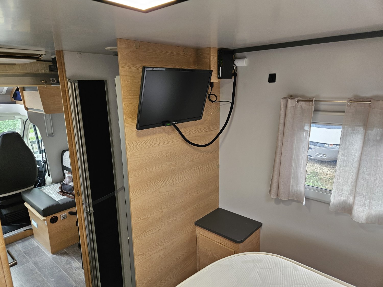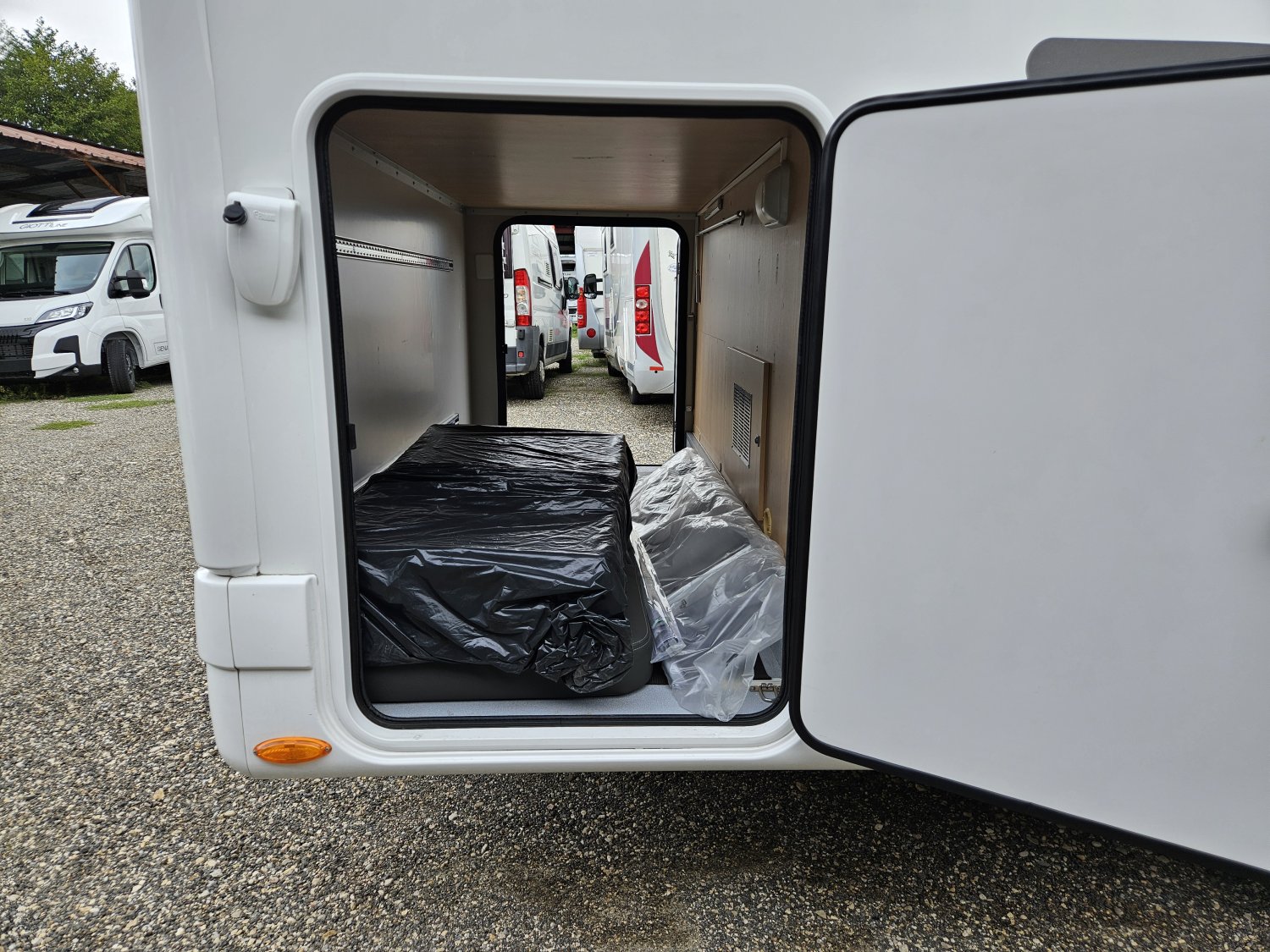 La grande soute garage arrière et les équipements de bord garantissent autonomie, confort et sécurité : parabole automatique, 2 télévisions 22', batterie lithium 200ah et convertisseur 3000w, attelage, coussins pneumatiques, climatiseur réversible etc...