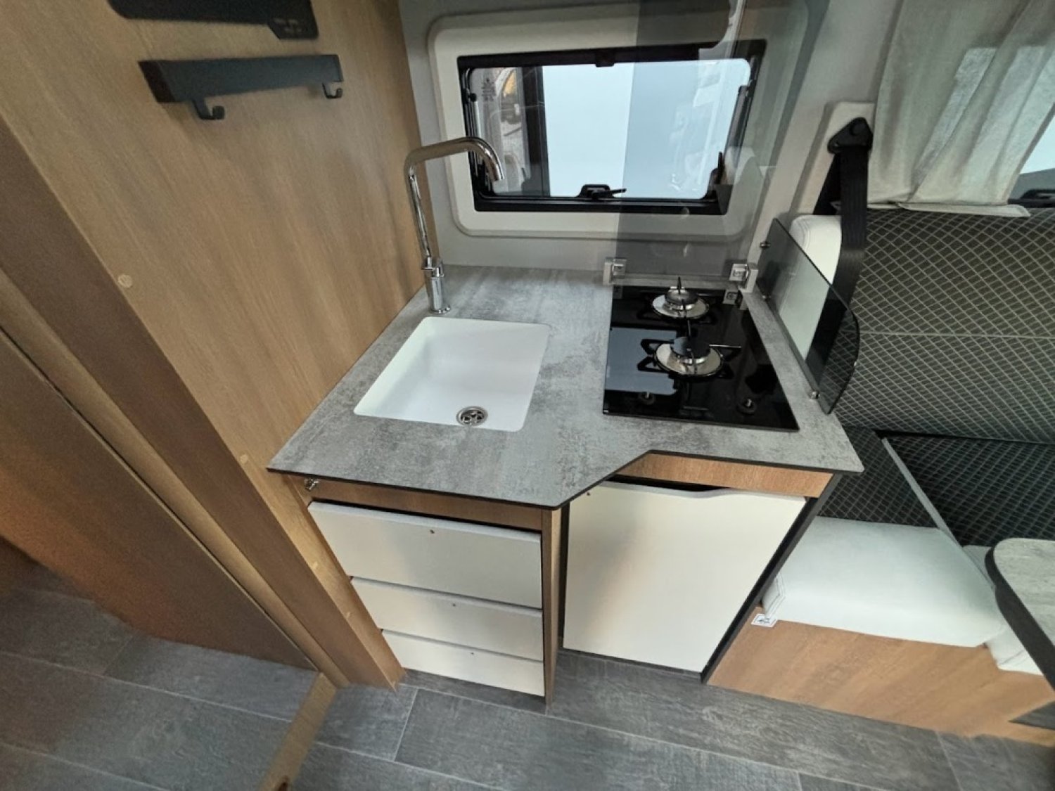 - PACK TOSCAN : grand skydoom, jantes alu 16″, clim cabine, ESP,hill holder, hill descente, traction plus, régulateur de vitesse, start and stop, 2 ème airbags, rétroviseur électrique et chauffant, grand lanterneau à l’arrière, couvercle d’évier, suspension arrière renforcée, parechoc laqué, commande Truma CP plus, housses de siège, réservoir d’eau sale isolée chauffé, porte XL avec baie, store plissé cabine, caméra de recul, rails de soute, lit pavillon électrique : 9 800 €
