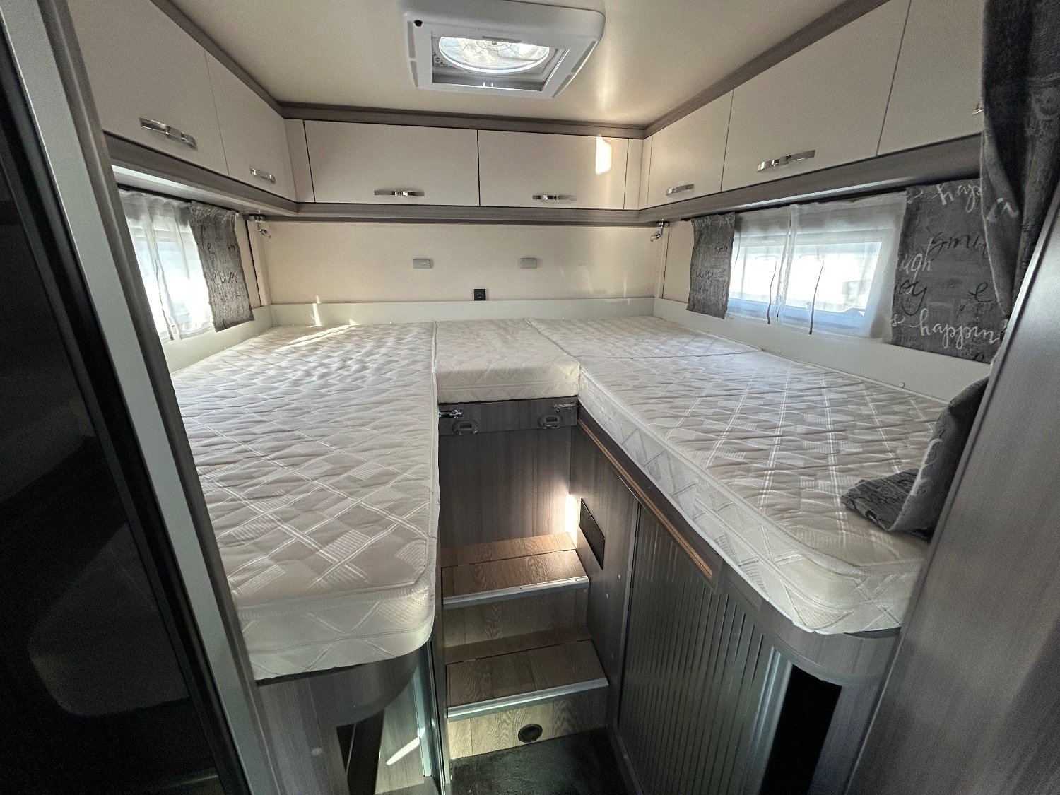 Posé sur Citroën Jumper 140 cv boite mécanique , vous dormirez à l'arrière en profitant soit des 2 lits jumeaux ou d'un très grand lit avec son coussin supplémentaire, Ce lit surplombe une très grande soute pouvant accueillir des vélos, au milieu la salle d'eau avec grande douche , wc et d'une cuisine équipée avec son grand réfrigérateur tri-mixte, à l'avant un agréable salon . Disponible et visible sur notre parc .