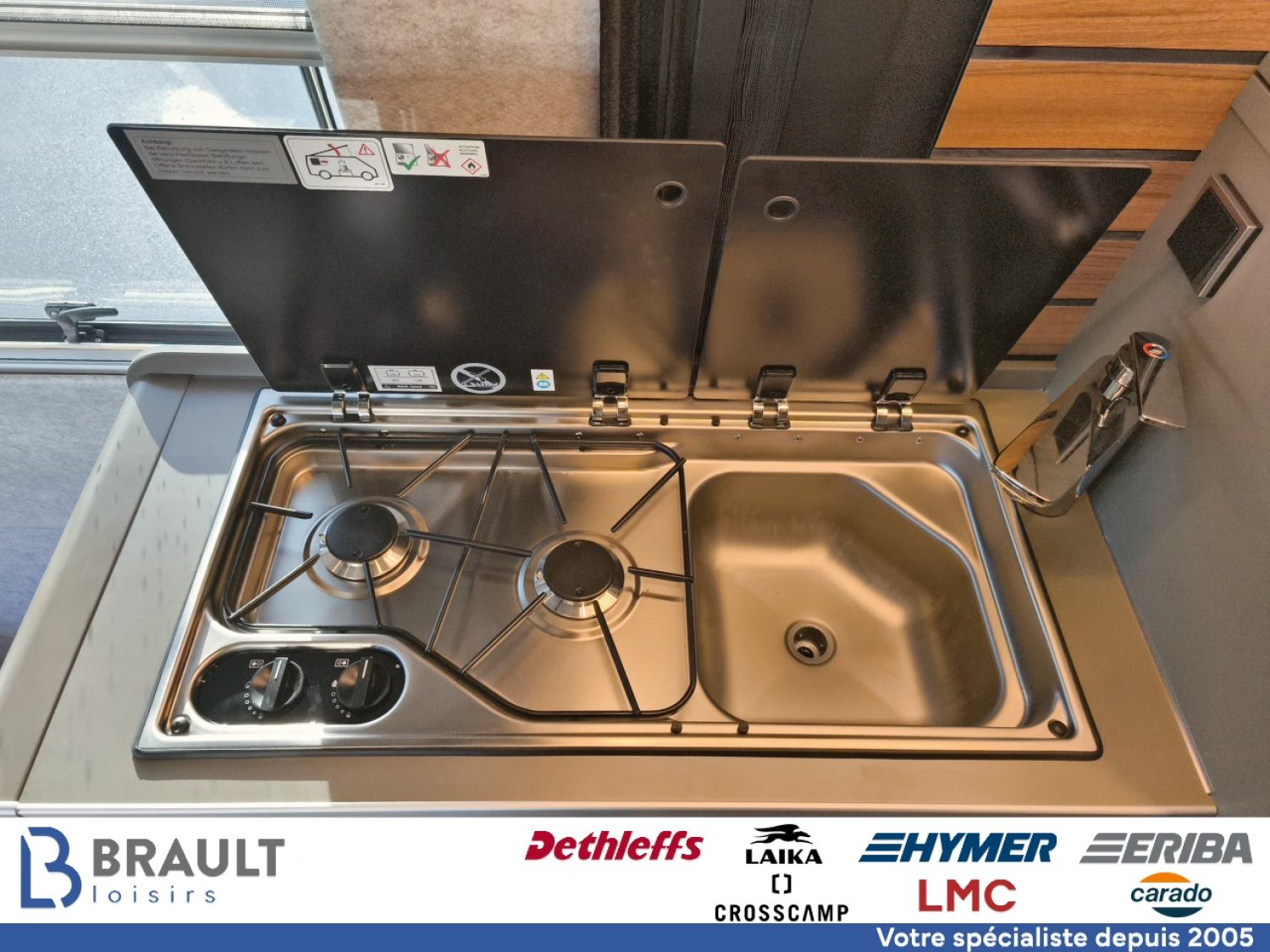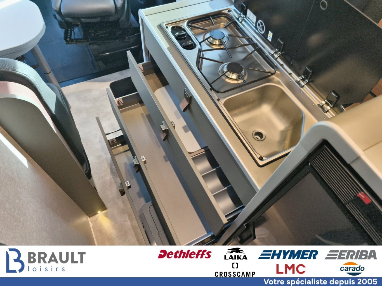 Système multimédia MBUX avec navigation, intégration pour smartphone, commande vocale et caméra de recul, Volant cuir (uniquement avec la boîte de vitesses automatique), Régulateur de vitesse actif DISTRONIC PLUS avec commandes au volant, Assistant reconnaissance des panneaux de signalisation, Ambiance style "HOME" (2 coussins houssés + pochette de rangement en tissu), Draps-housses sur mesure pour lits arrière adaptés aux contours du matelas, Système d'éclairage d'ambiance : système d'éclairage à plusieurs niveaux avec commande dynamique et individuelle (y compris l'intensité de la lumière) ainsi qu'un balisage au sol, Caillebotis de douche avec surface en liège, Pack capteurs HYMER Connect comprenant 1x capteur de niveau de gaz, 1x capteur de température et 2x capteurs de contact