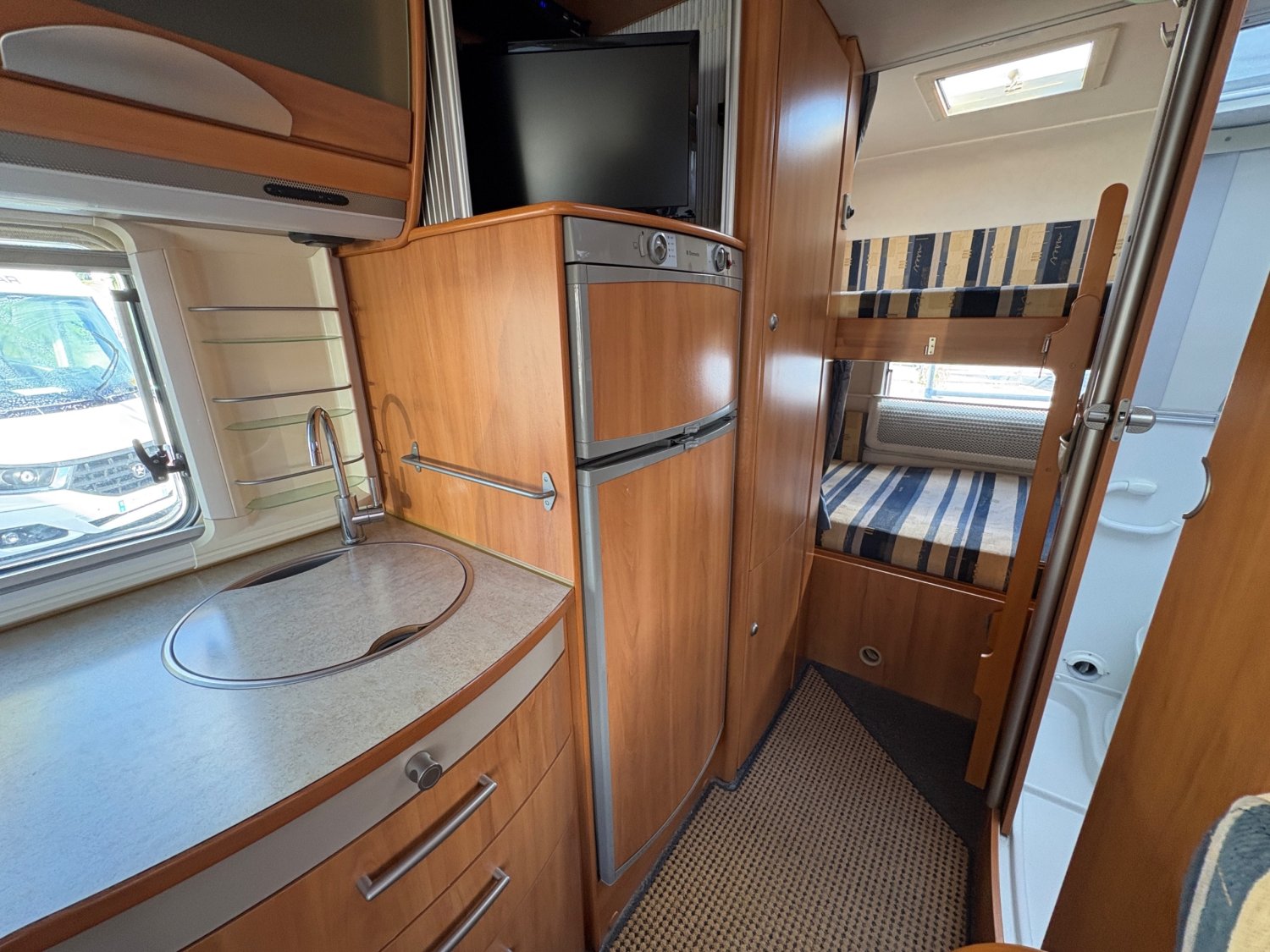 Le HYMER B 624 de 2005, motorisé par un fiable moteur Fiat 2.2L de 128 chevaux, incarne parfaitement le savoir-faire allemand en matière de camping-cars, offrant à la fois robustesse, confort et élégance, avec une carrosserie intégralement intégrée qui optimise l’aérodynamisme et l’espace intérieur ; à bord, on découvre un aménagement ergonomique et chaleureux, composé d’un vaste salon lumineux grâce à ses grandes baies vitrées, d’une cuisine fonctionnelle équipée de tout le nécessaire pour voyager en autonomie, d’une salle de bain bien agencée avec douche séparée, et d’un lit pavillon confortable, le tout reposant sur un châssis Fiat réputé pour sa fiabilité et sa tenue de route exemplaire, ce qui fait du Hymer B 624 un compagnon de route idéal pour les longues escapades, alliant plaisir de conduite, confort de vie et qualité de fabrication durable.