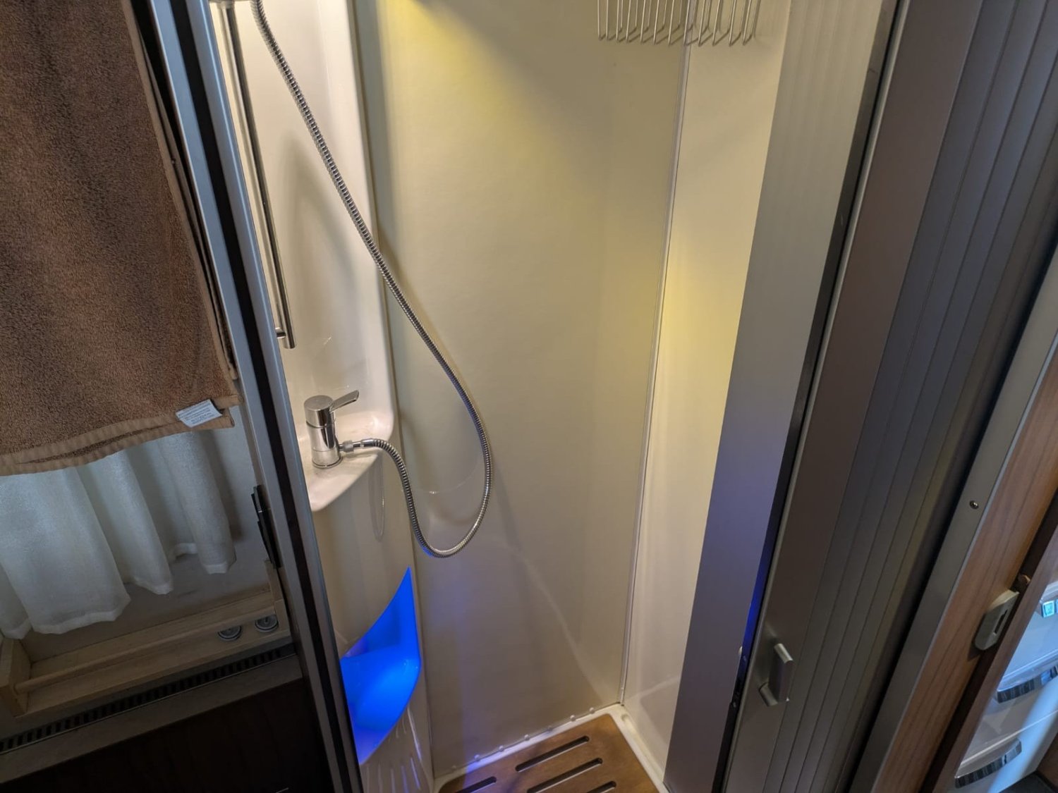 CHAUFFAGE CENTRAL ALDE, STORE EXTERIEUR 4.5M, GAZINIERE 3 FEUX, DOUCHE ET WC SEPARES, ECLAIRAGE LED, MOUSTIQUAIRE DE PORTE CELLULE, PORTE VELO, RAFRAICHISSEUR D' AIR, REFRIGERATEUR 12V A COMPRESSION, GLACIÈRE À COMPRESSION