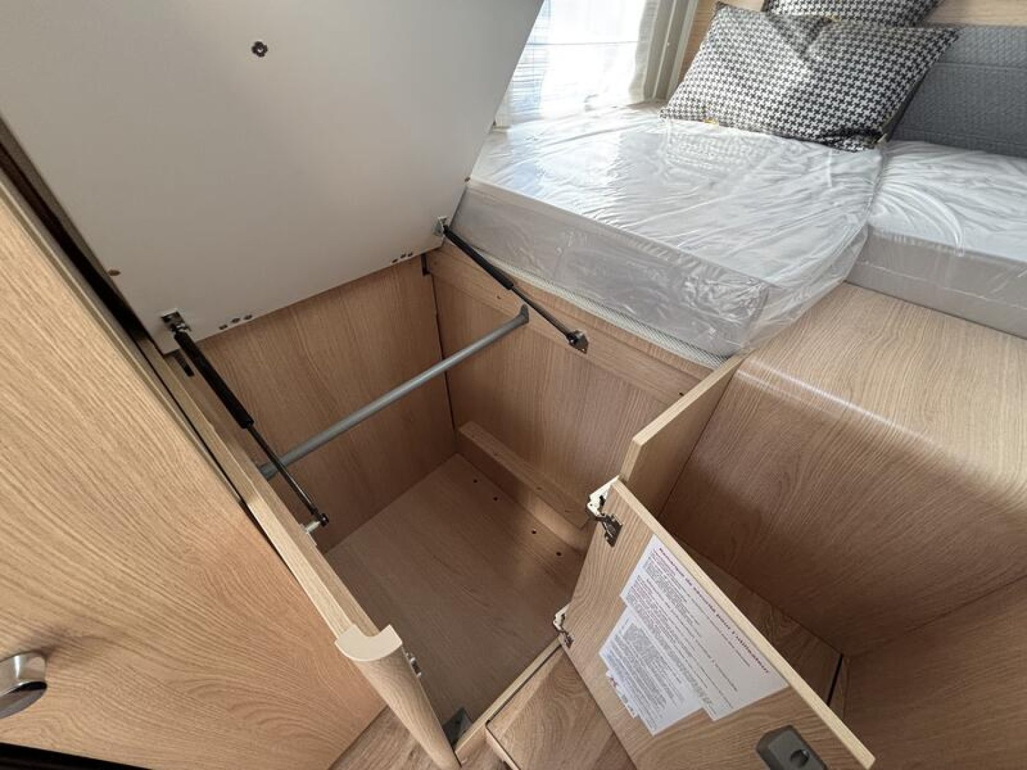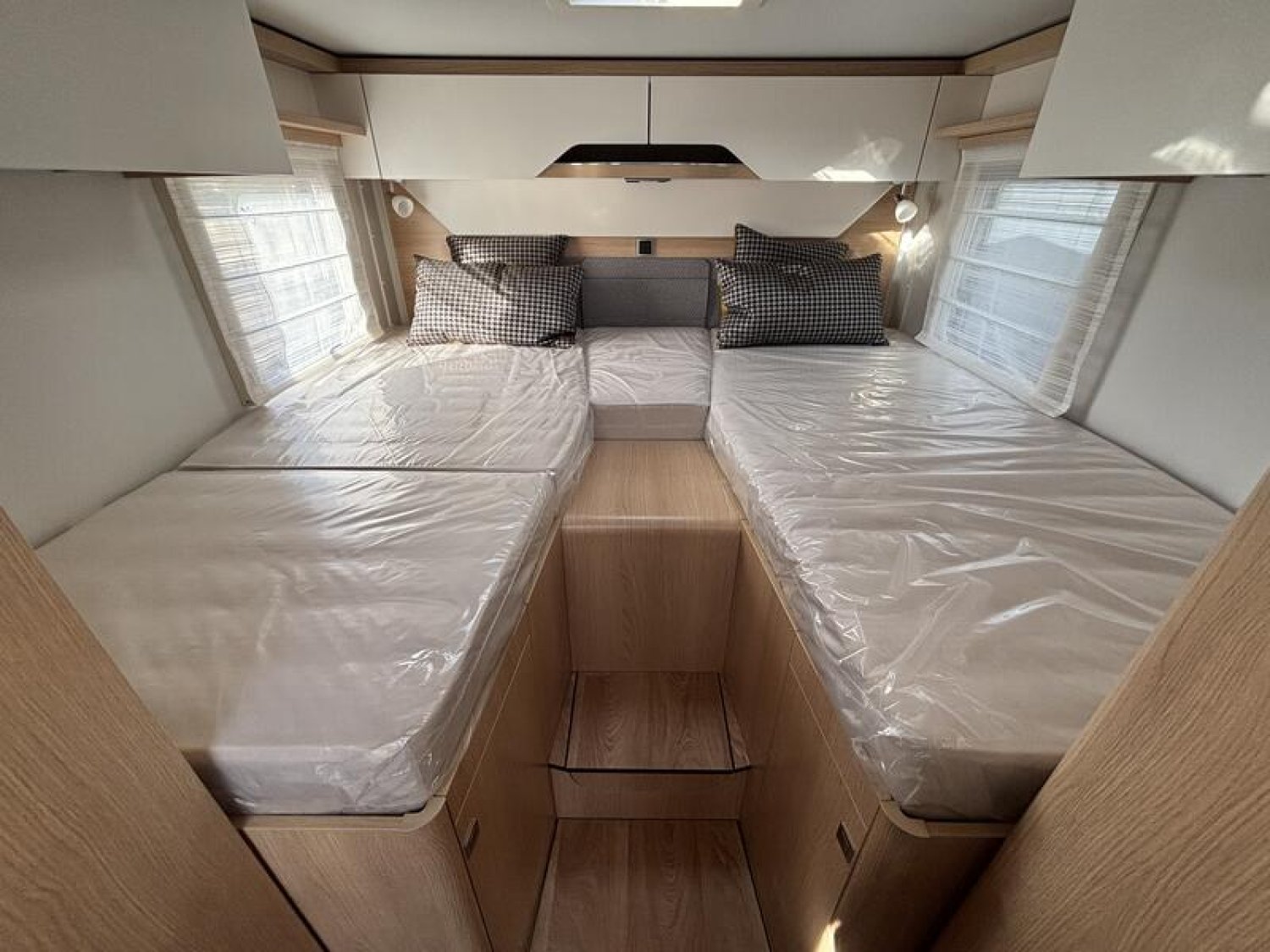PACK CONFORT CELLULE Caillebotis de douche avec surface en bois ,- Draps-housses sur mesure pour lits arrière adaptés aux contours du matelas ,- Coussins avec housses (4 pièces) - Système Ambient Light : système d'éclairage à plusieurs niveaux avec commande dynamique et individuelle (y compris l'intensité de la lumière) ainsi qu'un balisage au sol - Prises supplémentaires : 4 x 230 V (2 x garage ; 1 x dînette ; 1 x lit) / 1 x 12 V / 1 x double USB (y compris crédence cuisine) : 1400 €