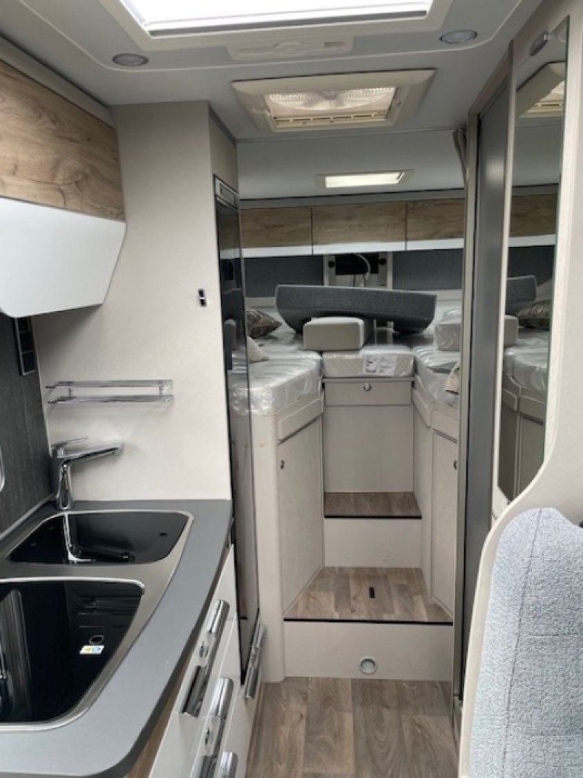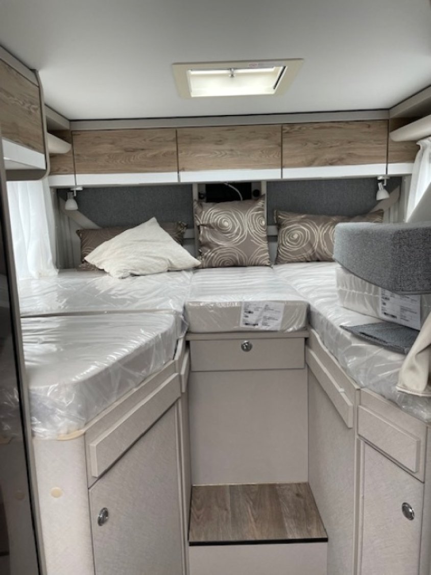 PACK CONFORT CELLULE : DRAPS HOUSSE POUR LITS AR, PRISES SUP 5X230/3X12V/2XDOUBLE USB, COUSSINS AVEC HOUSSES, ECLAIRAGE AMBIANCE, CAILLEBOTIS DE DOUCHE