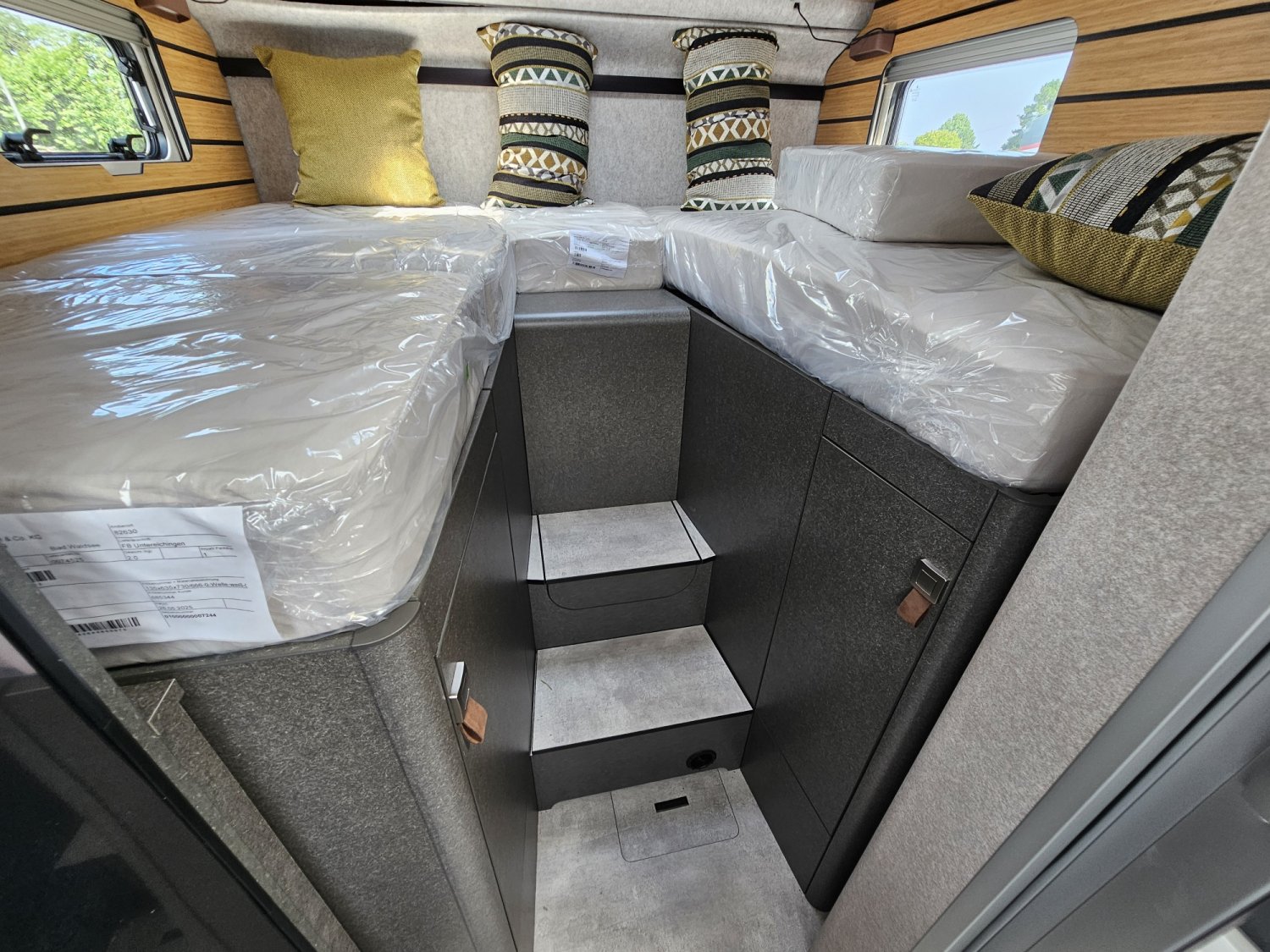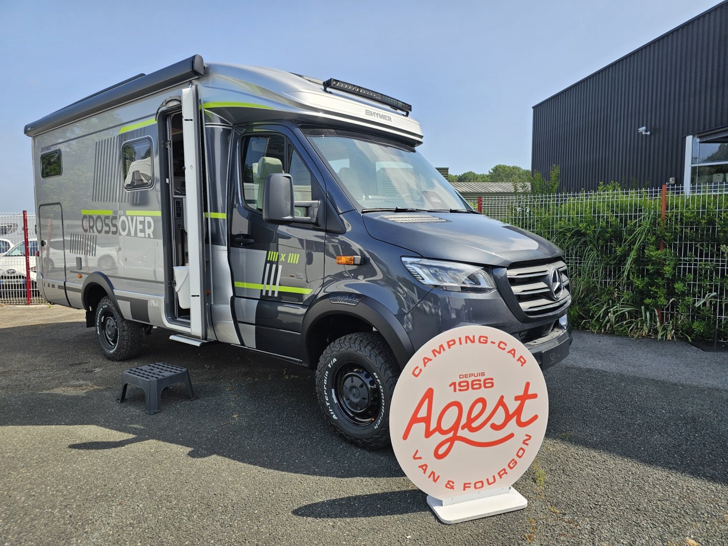 Couleur cabine : gris Ténorite , Couleur cellule : argent Crystal, Transmission intégrale 4x4, Boîte de vitesses auto 9G, TRONIC, Antibrouillard avec feux de virage, Pare, brise chauffant, Système multimédia MBUX avec, navigation caméra de recul, Climatisation auto THERMOTRONIC, Régul de vitesse DISTRONIC PLUS, Galerie de toit avec échelle arrière, Barre LED 44" au, dessus de la cabine, Store extérieur avec éclairage LED , Protection sous moteur, Douche extérieure , Set d’outils (bêche pliante, hache, etc.), Transfo dînette en L en couchage, Draps, housses sur mesure lits arrière, Coussins avec housses (4 pièces), Deuxième cassette de toilettes, Chauffage à air pulsé au diesel 6 kW, kit altitude et résistance électr 1800 W, HYMER Smart Battery System 2.0 (4 x 80Ah LFP), Panneaux solaires 2 x 95 W avec régulateur MPPT, Convertisseur 12 V à 230 V, 1800 W