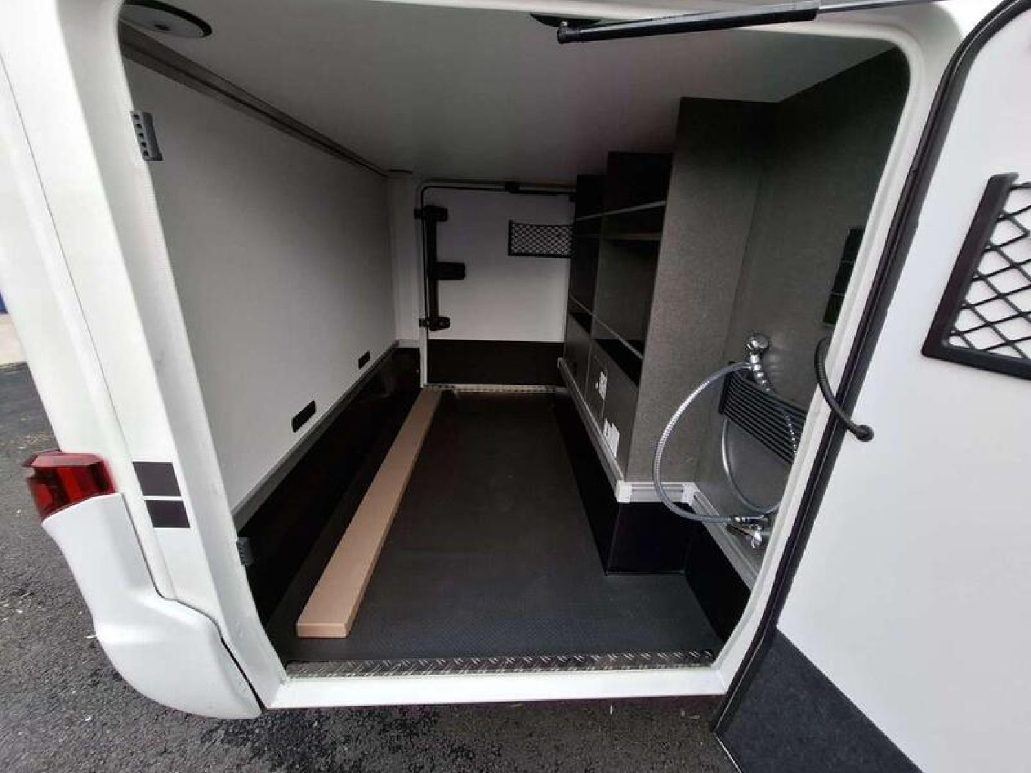 Douche extérieure dans le garage + Fermeture centralisée des portes conducteur, cellule et soute garage + Revêtement supplémentaire pour mise à niveau du cabinet de toilette + Résistance électrique de 1 800 W (pour chauffage à air chaud diesel de 6 kW) + Prises supplémentaires : 3 x 230 V / 1 x 12 V : 1935 €