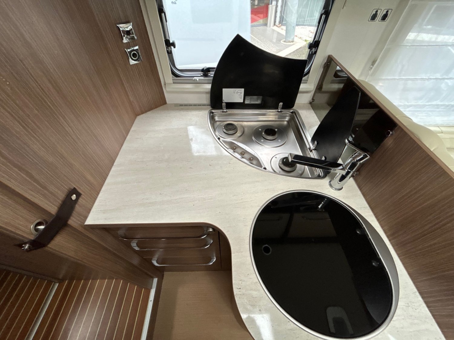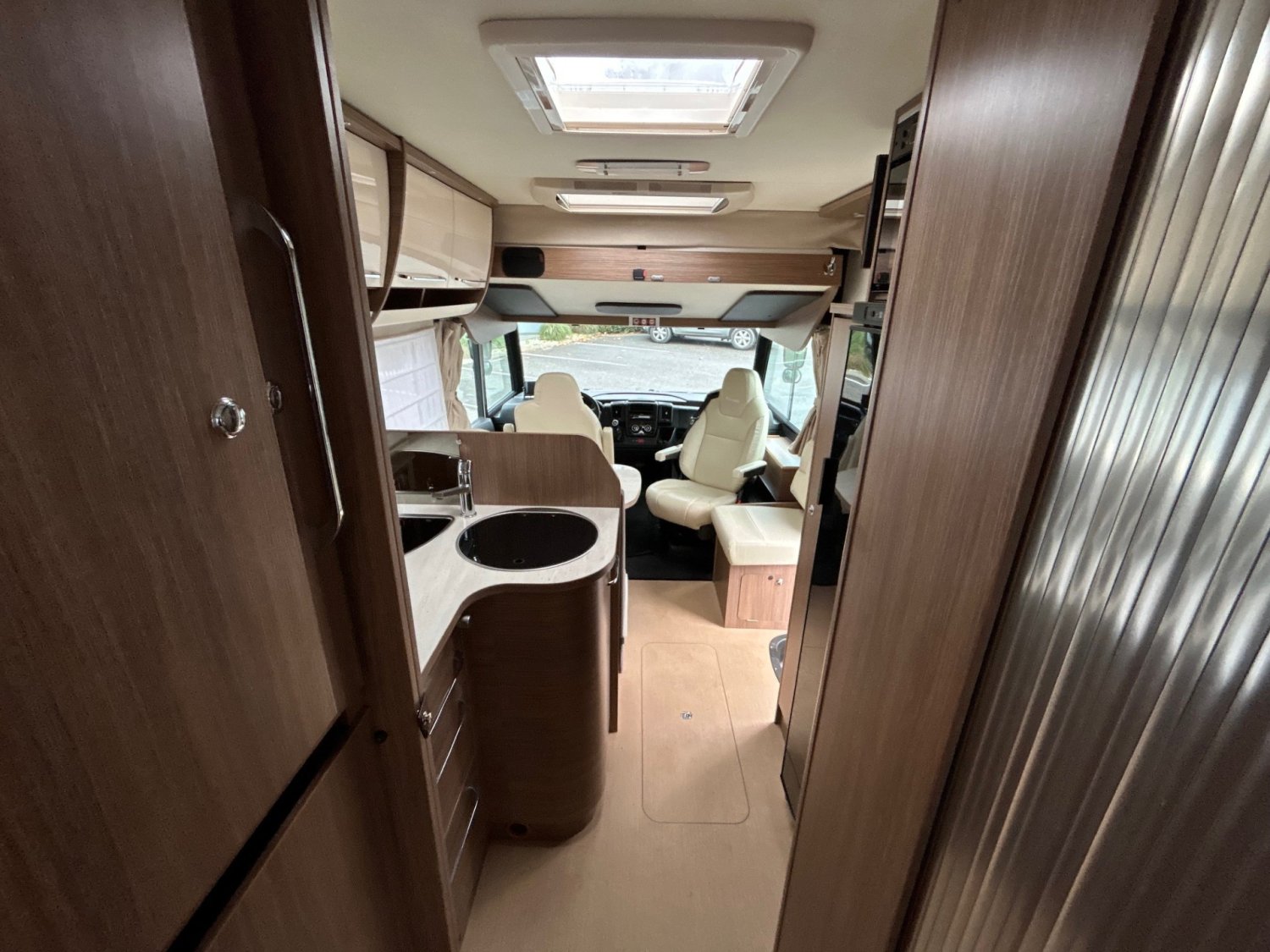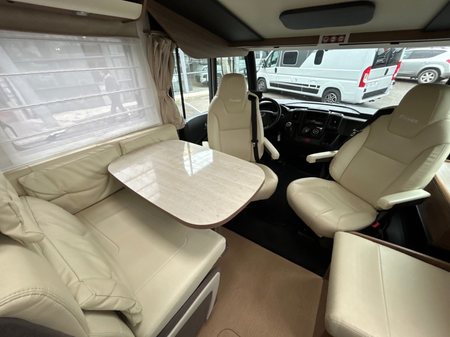 L'Itineo MJB 740 tire son épingle du jeu de par l'implantation de son couchage fixe à l'arrière, deux matelas qui se modulent aussi bien en lit central qu'en lits jumeaux. L'espace de vie est confortable et ses nombreux équipements en font un véhicule idéal pour les grands voyages.