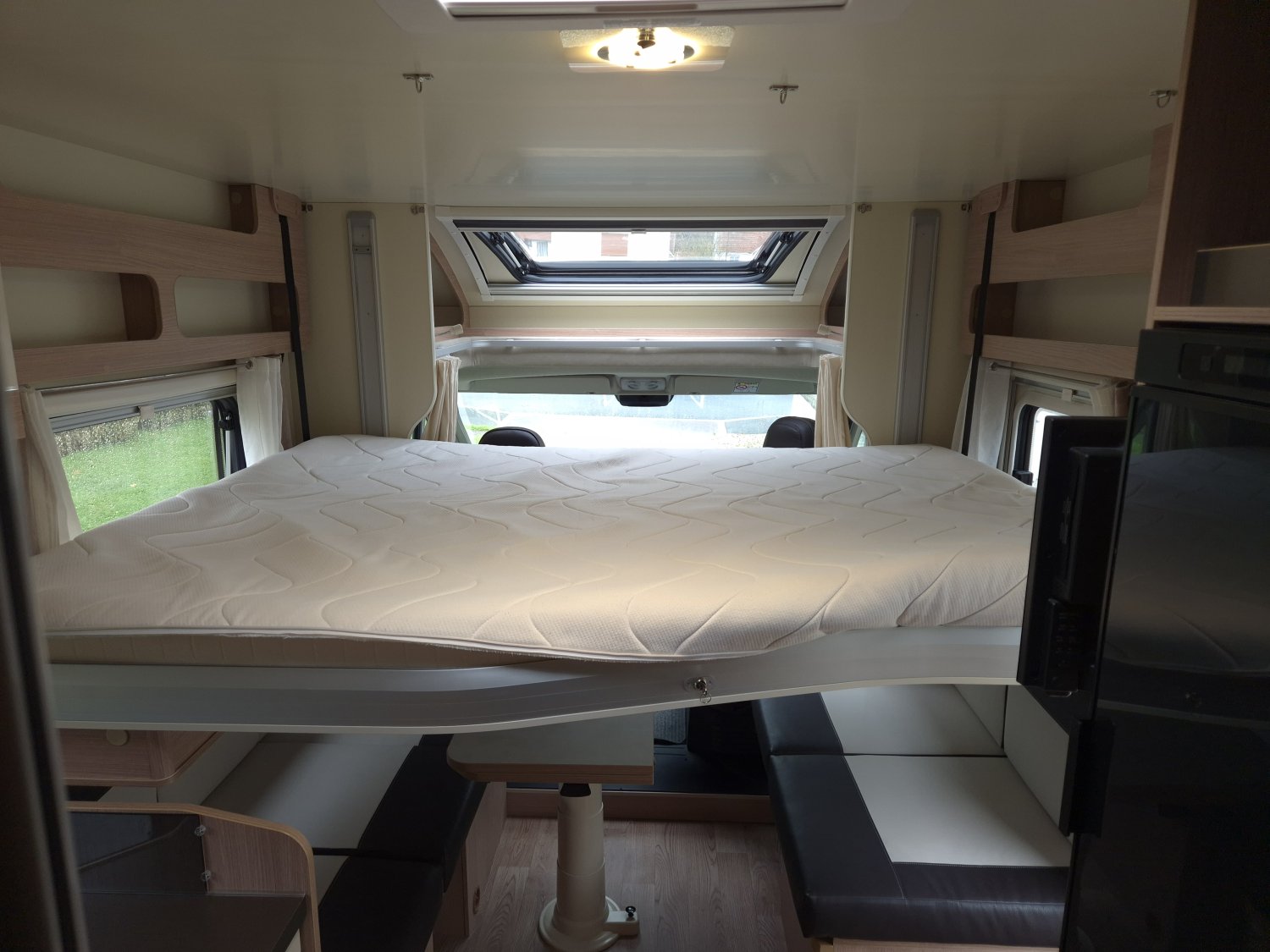 Volumes de rangement généreux, parfaits pour les longs séjours . Un gabarit compact facile à manœuvrer, sans renoncer au confort, à la circulation intérieure fluide ni à l’esprit “grands voyages”.