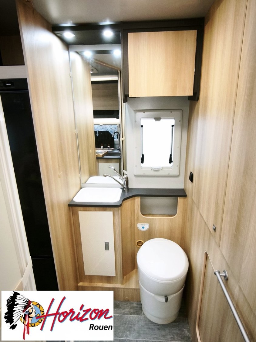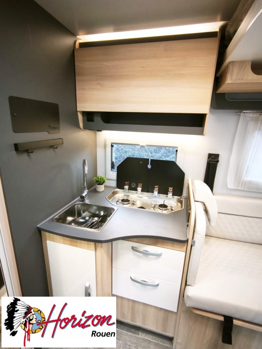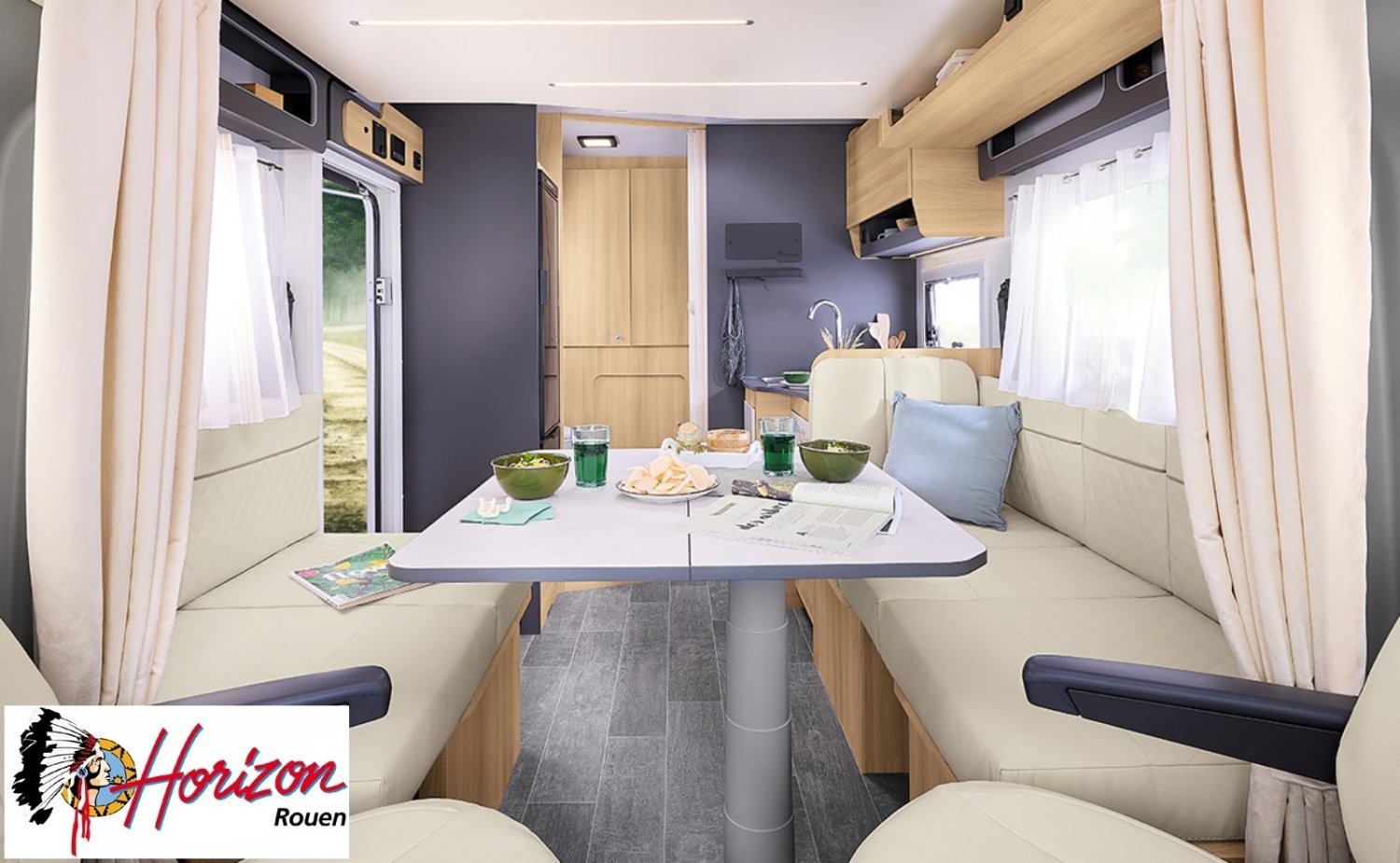 Il mesure la longueur d’un fourgon aménagé : 6,36 m. Pourtant, c’est un vrai camping-car, très confortable. Dépourvu de lit permanent arrière, L’Itineo PC 640 offre de volumineux espaces de rangement, un beau salon face-face, un cabinet de toilette transversal et une grande penderie. Son secret : lit descend du plafond, sur le salon.