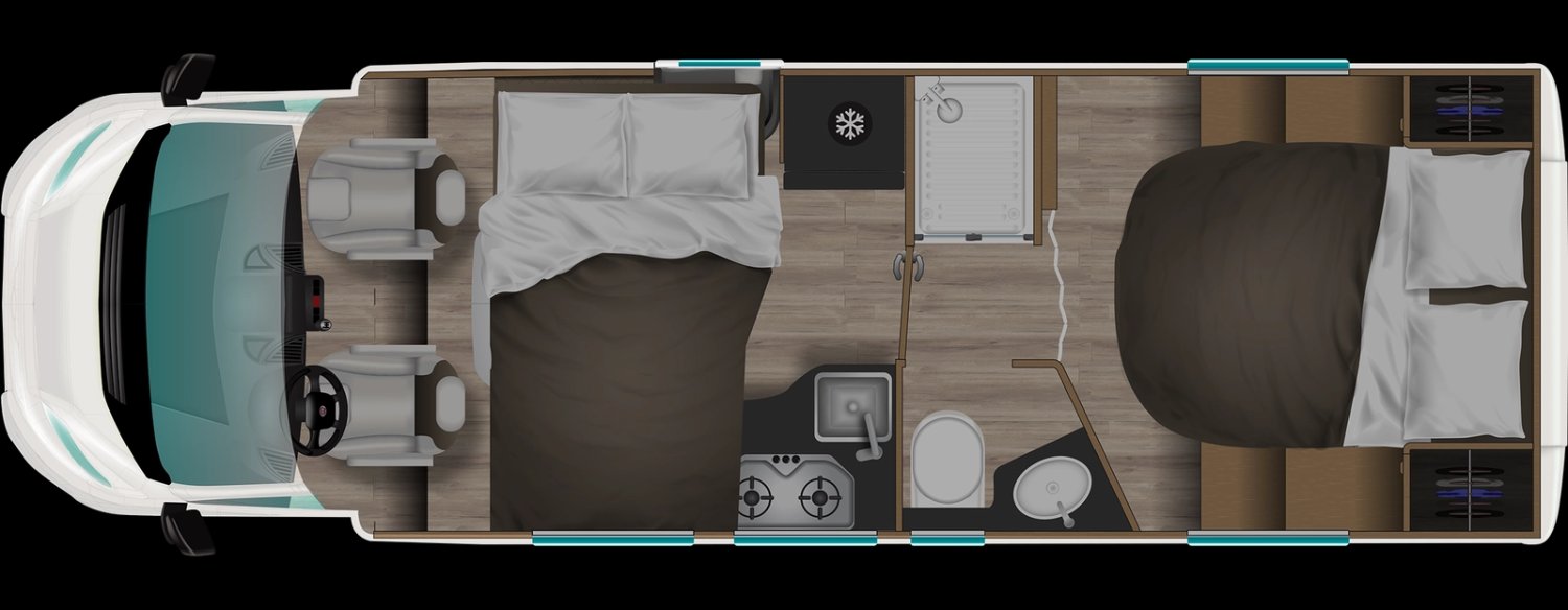 - Dimensions : L 7.4m x l 2.35m x h 2.88m