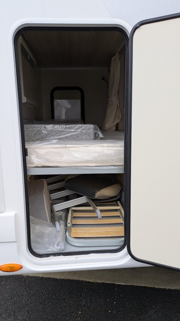 Couchages : lits superposés 2 x (90 x 219cm) et lit de pavillon électrique (149 / 125 x 192cm), lit dinette (113 x 219cm)