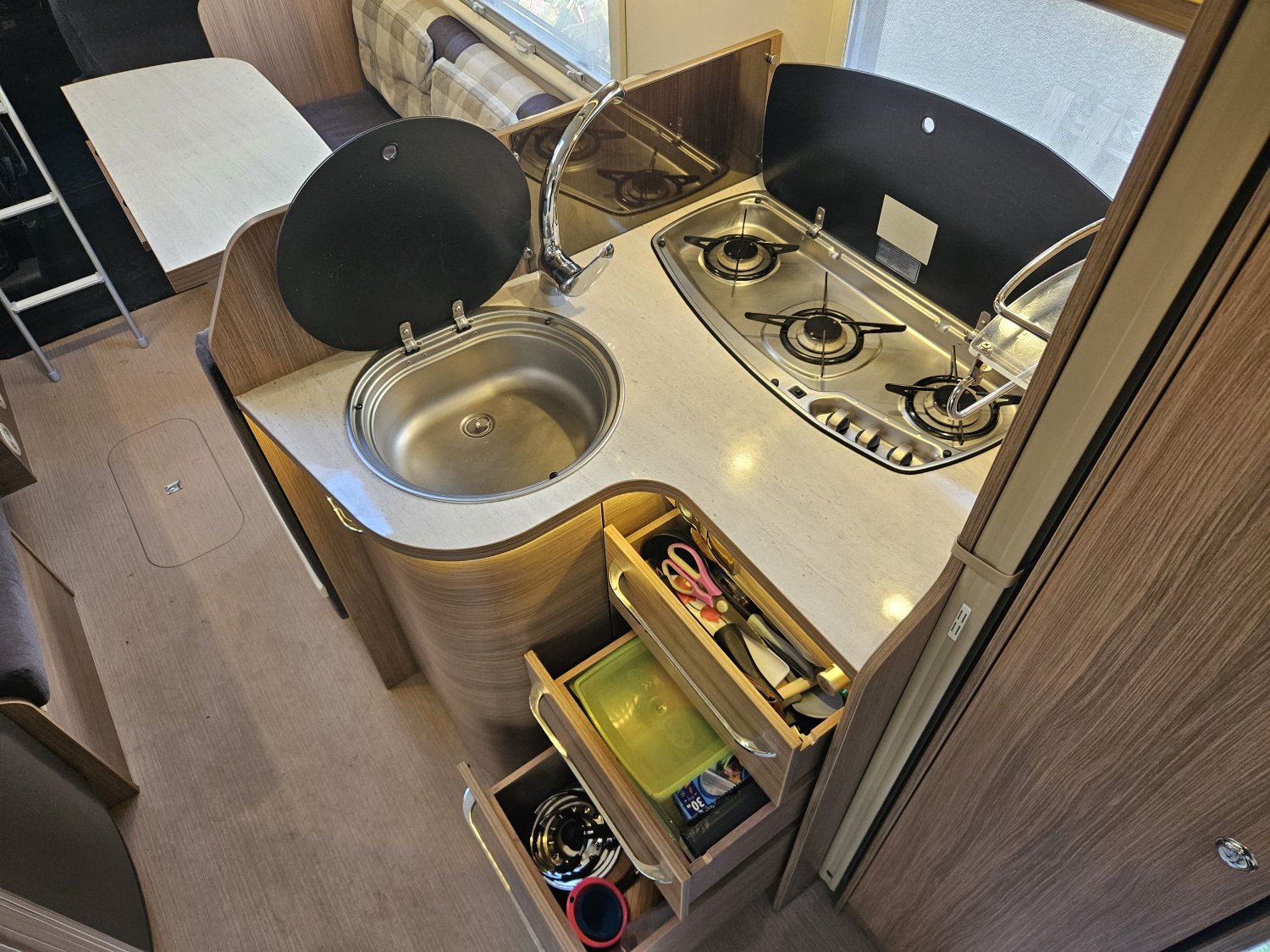 Les couchages se composent d'un lit pavillon, de lits superposés arrière et d'un lit sur table, ce qui le rend parfaitement adapté à une famille.