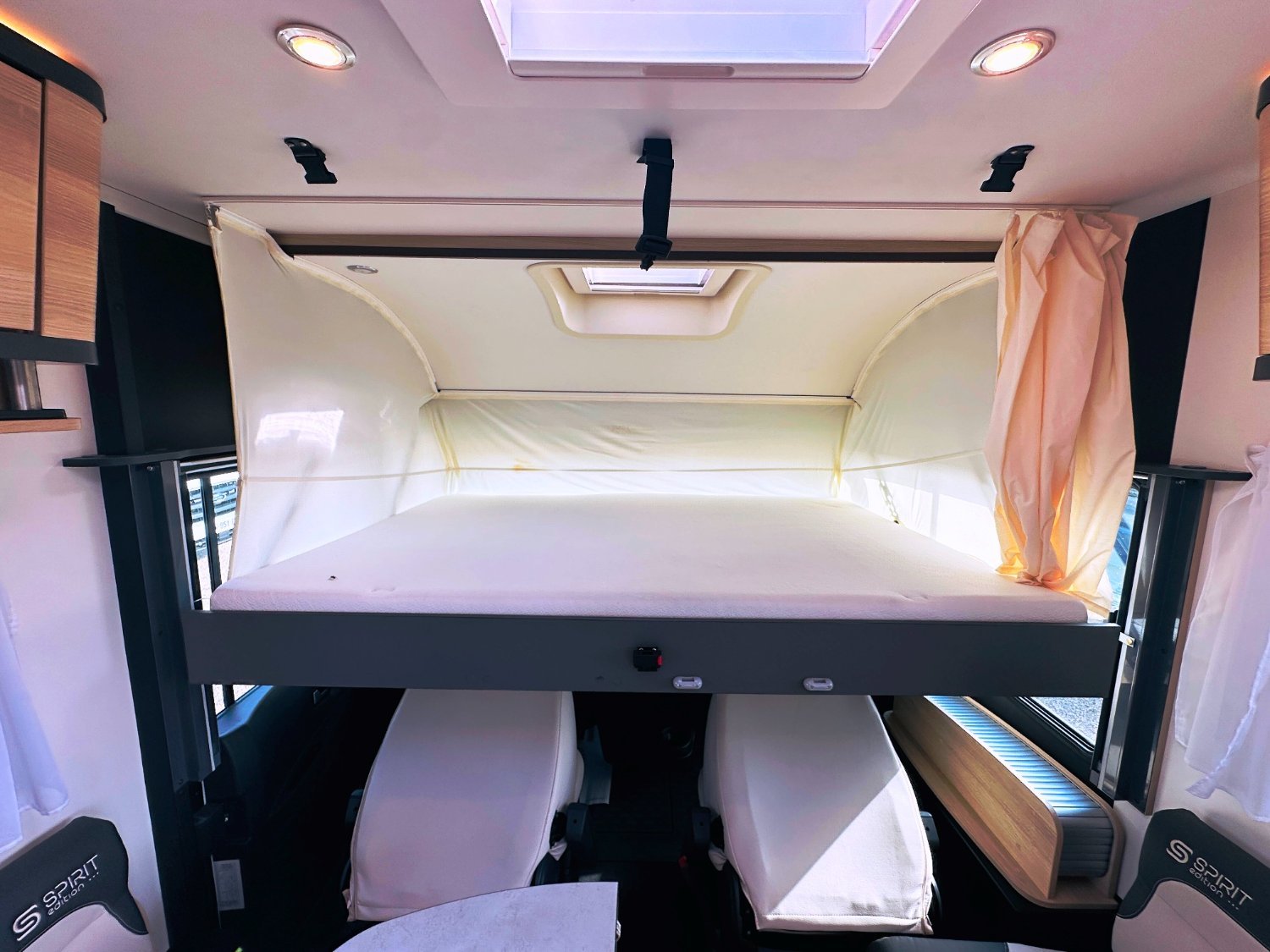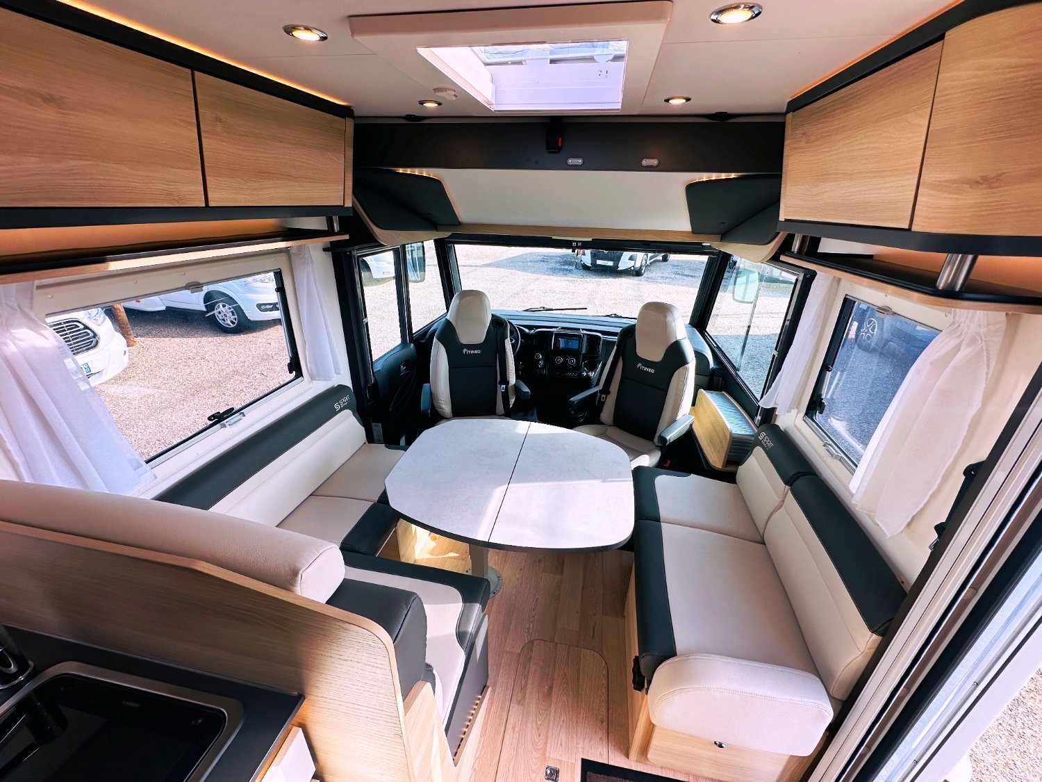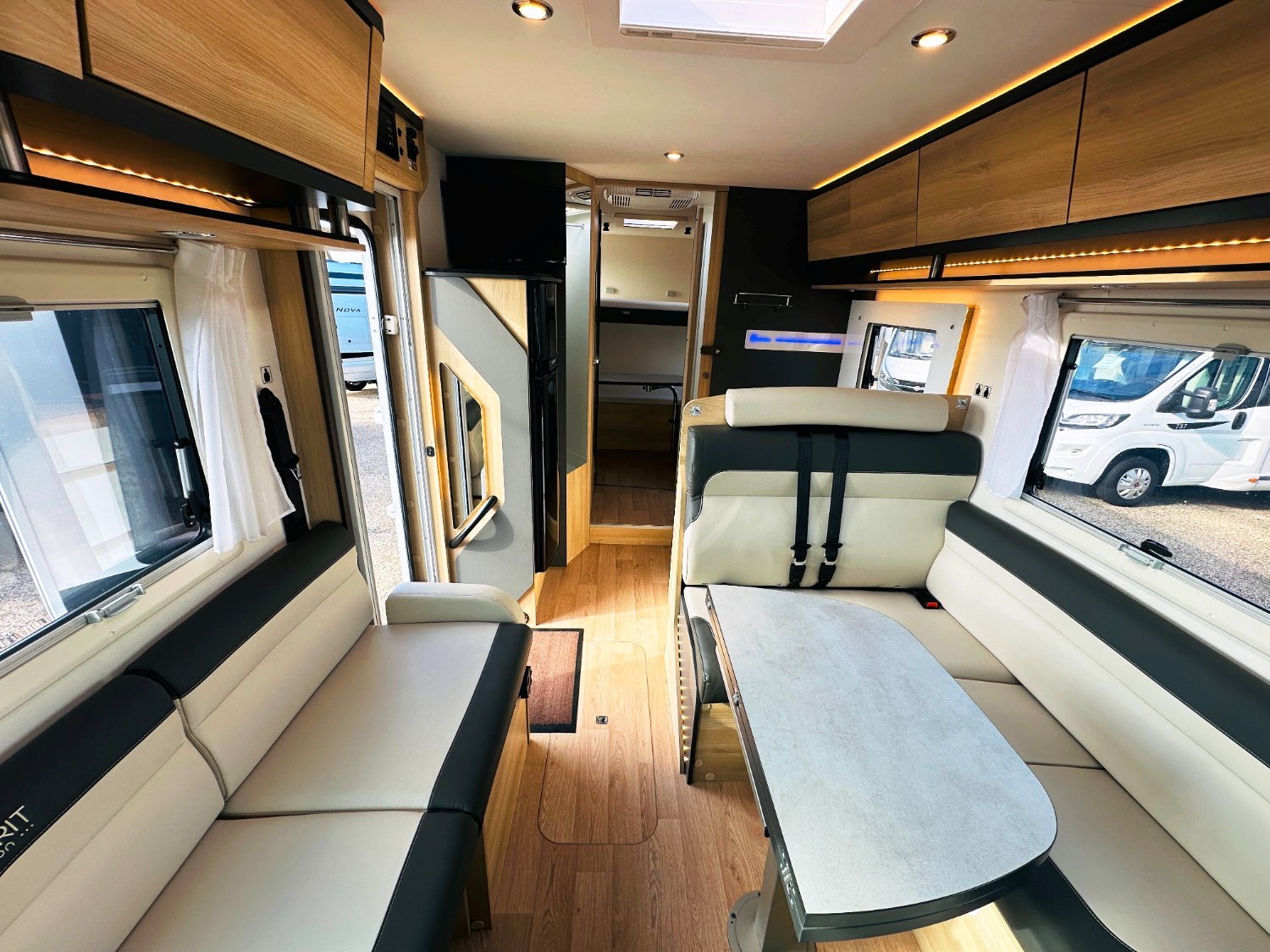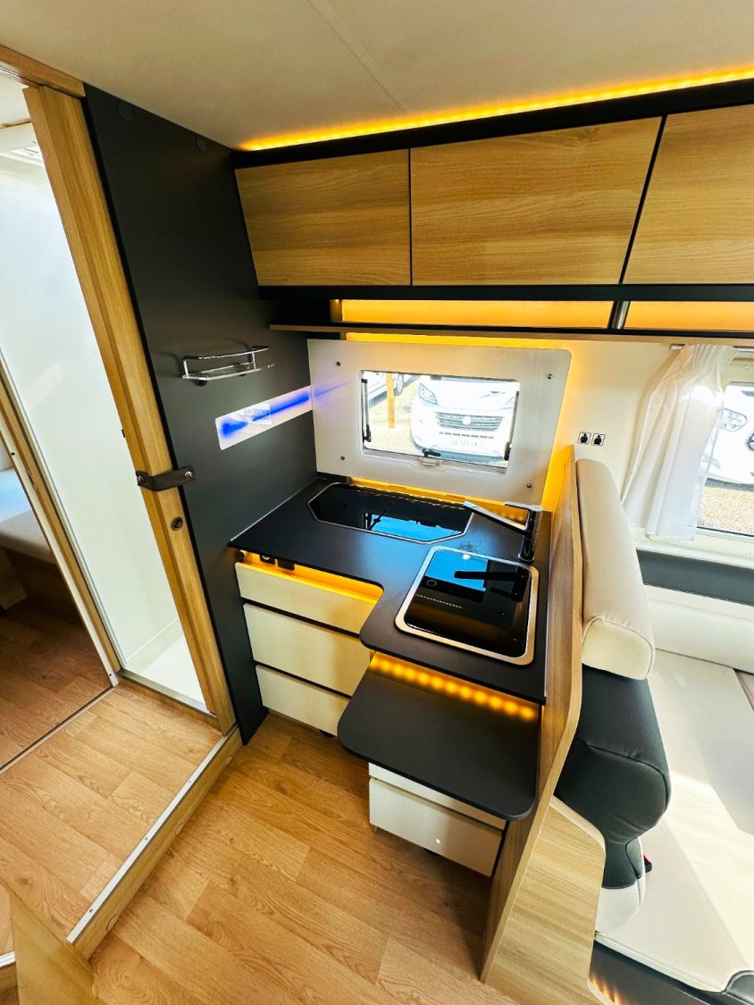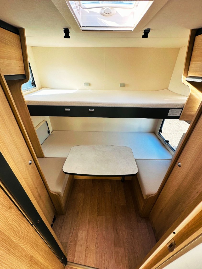 Ce grand intégral sur Fiat propose un agencement inédit. Avec ses cinq couchages, le SB 740 s’inscrit comme un véhicule familial. Proposé en version Spirit Edition, il reçoit de série une décoration spécifique et garantit tout le confort dans l’habitacle et le plein d’équipements (2 batteries lithuim 200AH, convertisseur, clim cellule, etc..).